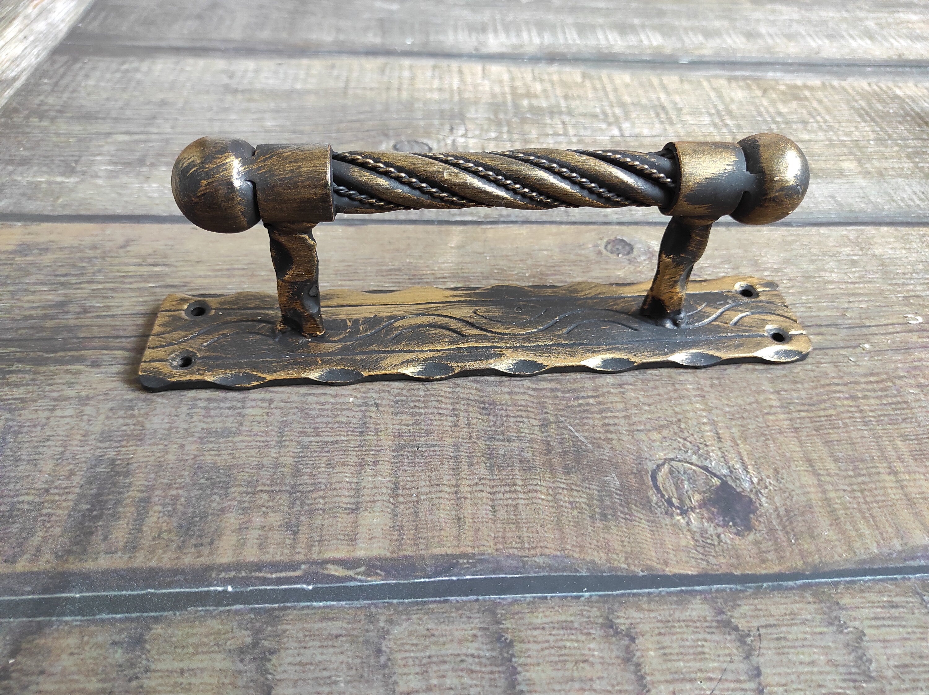 Hand Forged Twisted Metal Door Handle: Rustic Medieval Decor