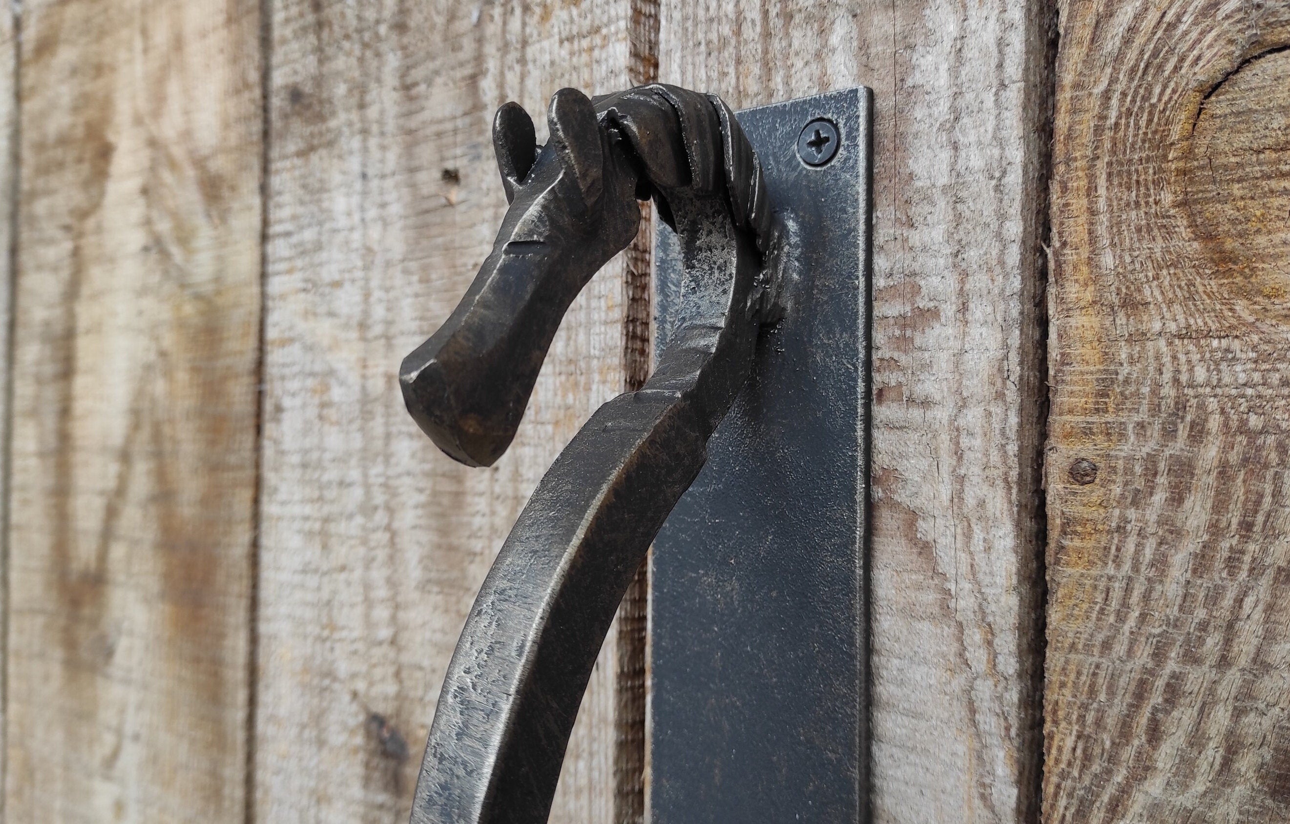 Hand Forged Steel Horse Barn Door Handle: Rustic Stable Decor