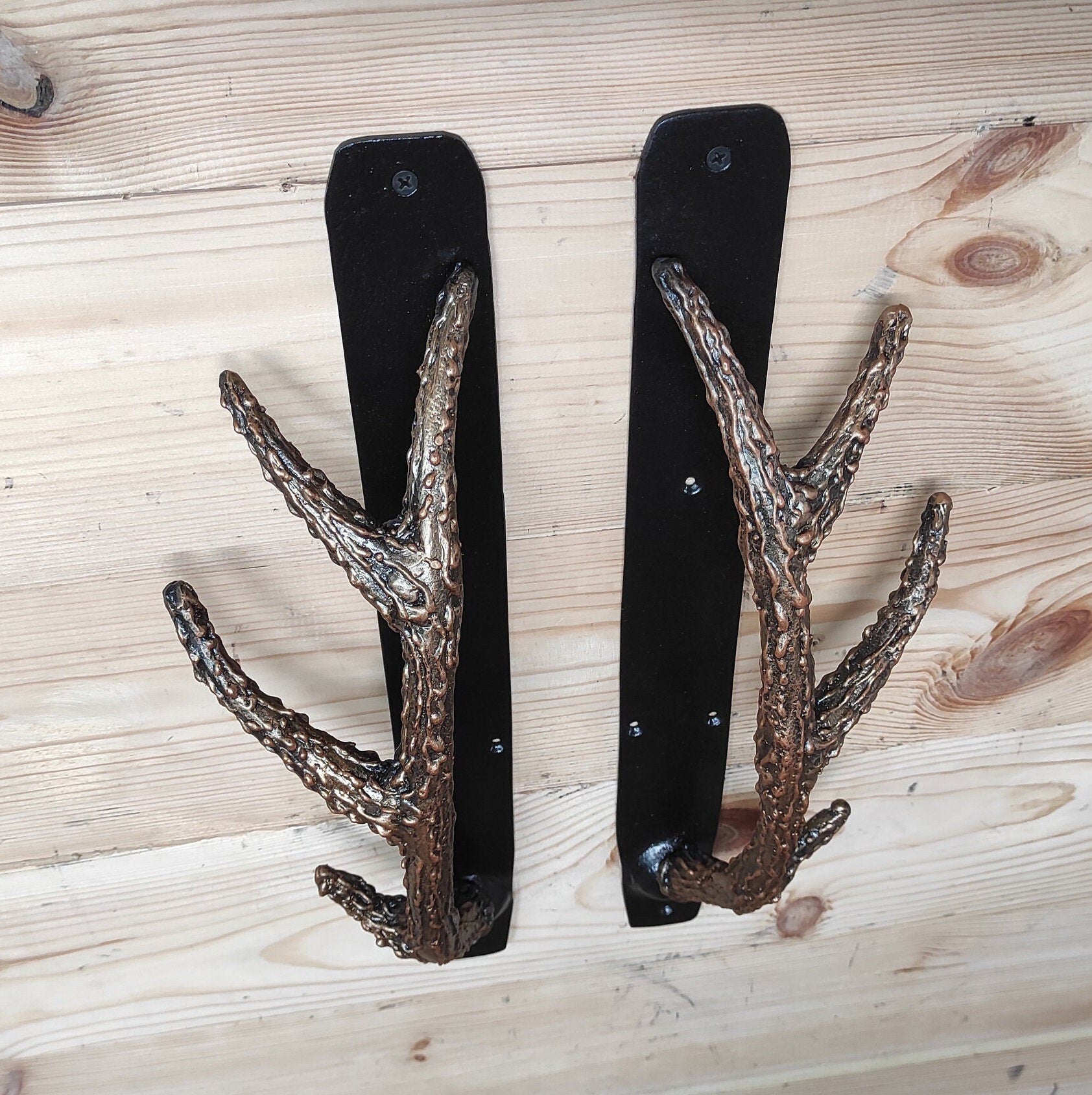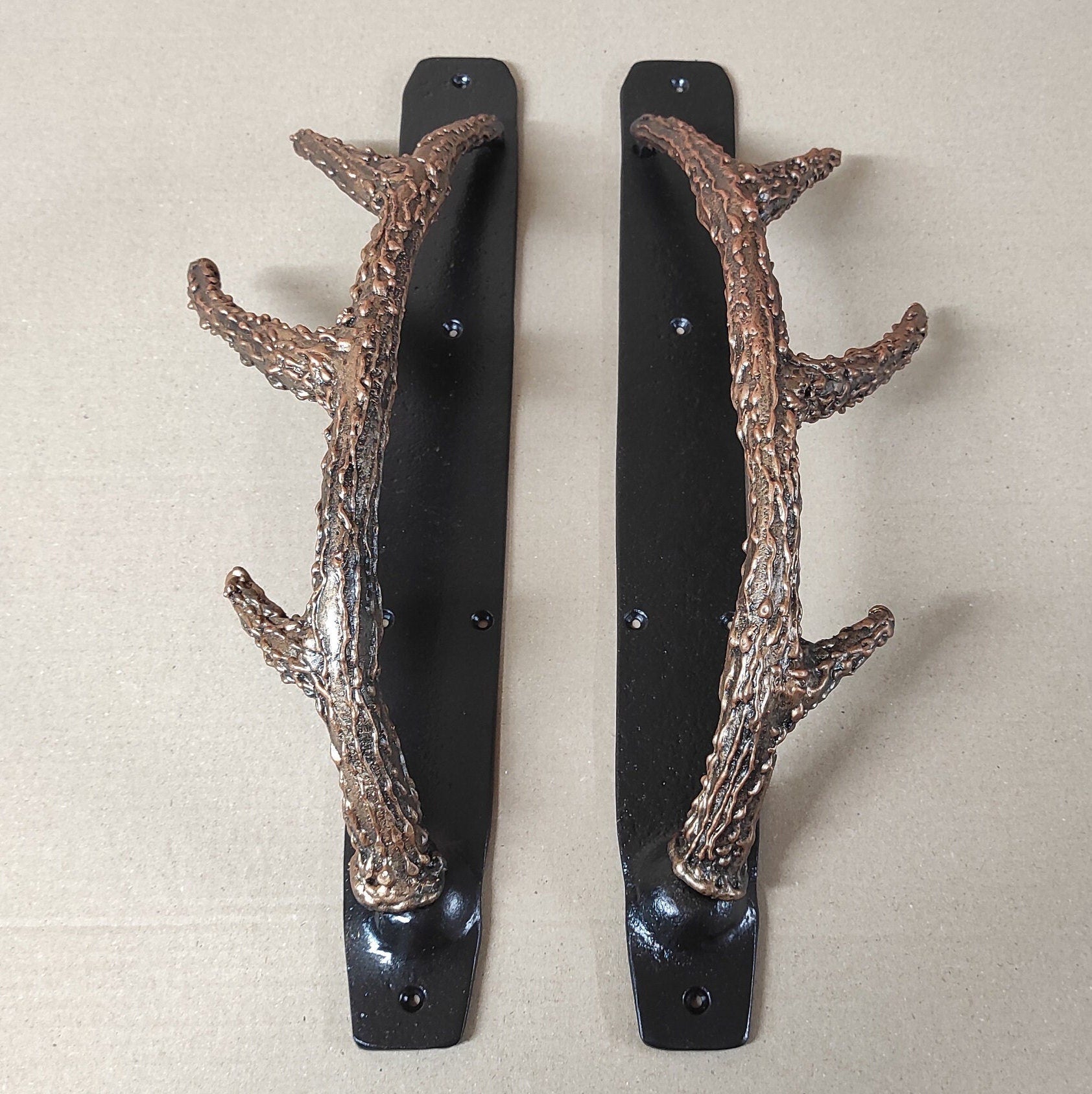 Handcrafted Iron Antler Door Handle: Rustic Barn Door Decor