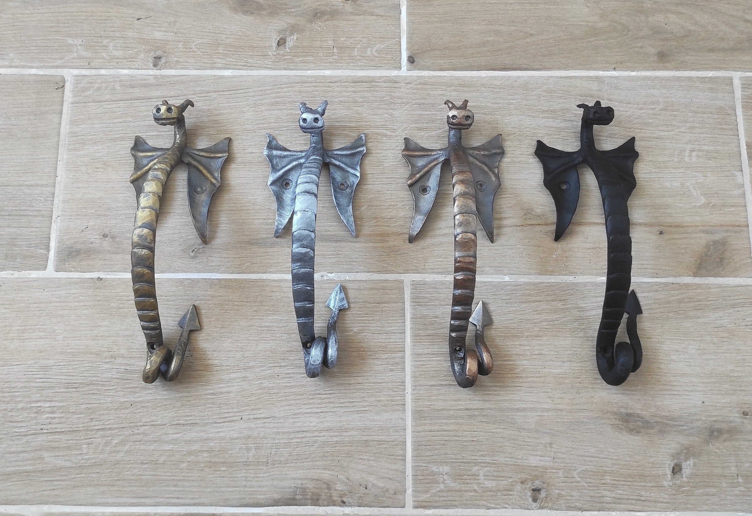 Hand Forged Dragon Door Handle: Wrought Iron Medieval Decor