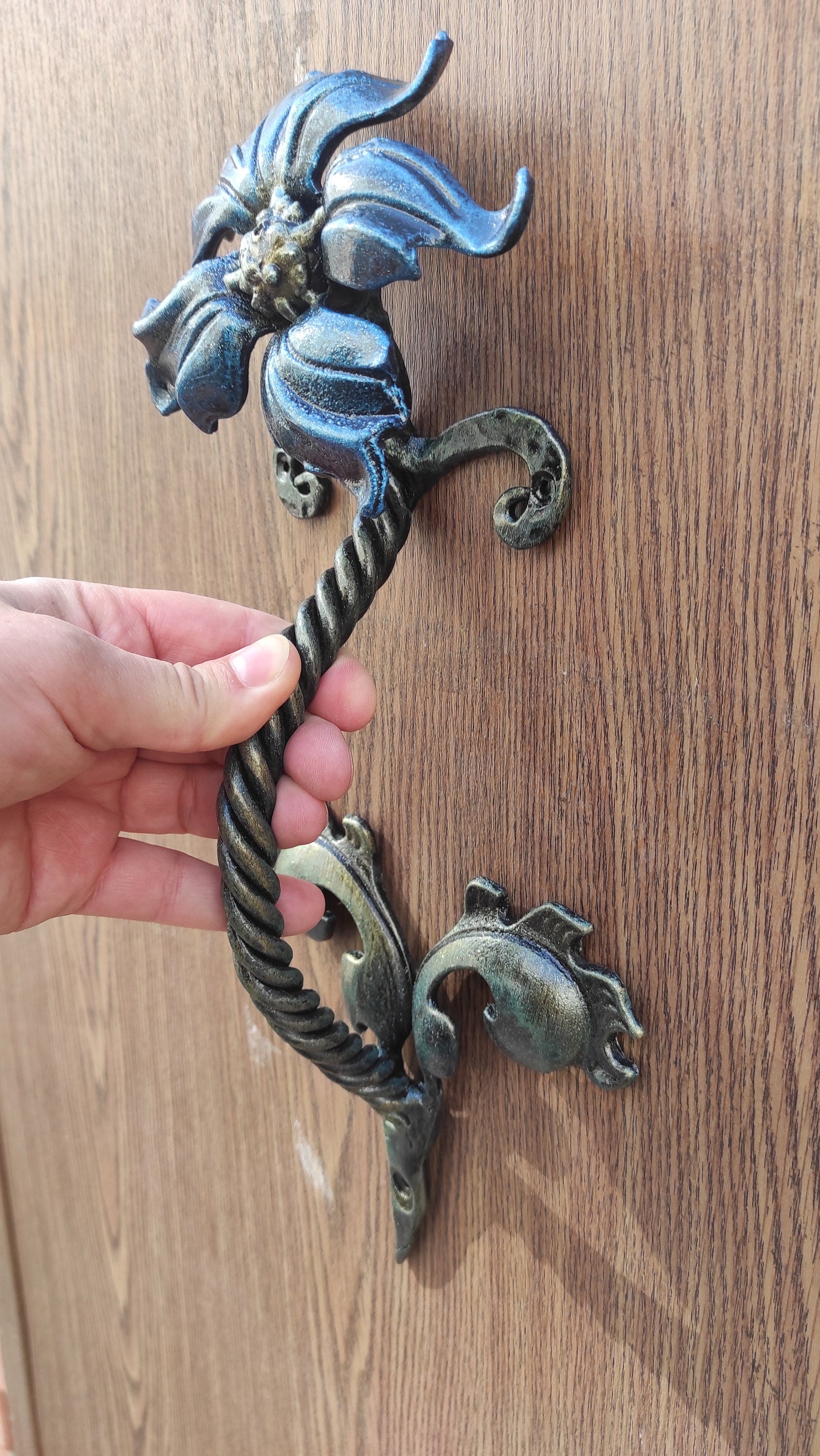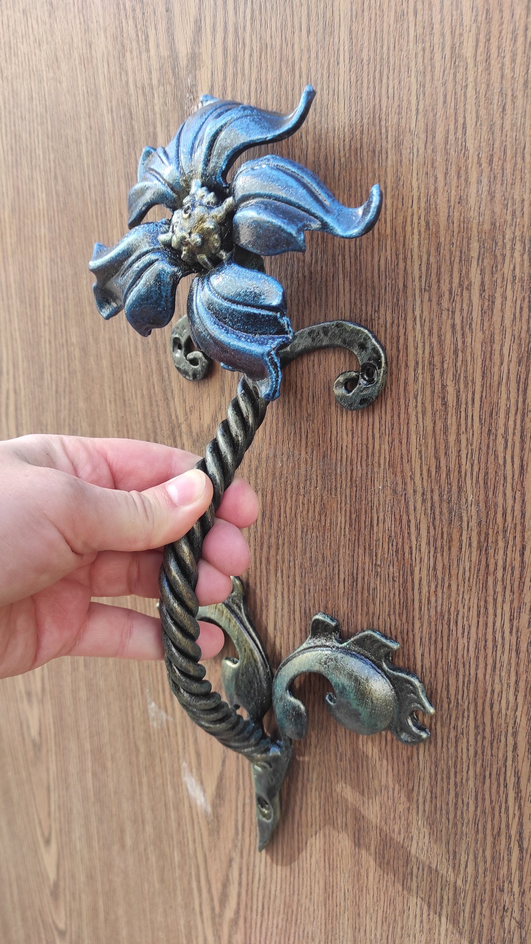 Hand Forged Flower Door Handle: Wrought Iron Barn Decor