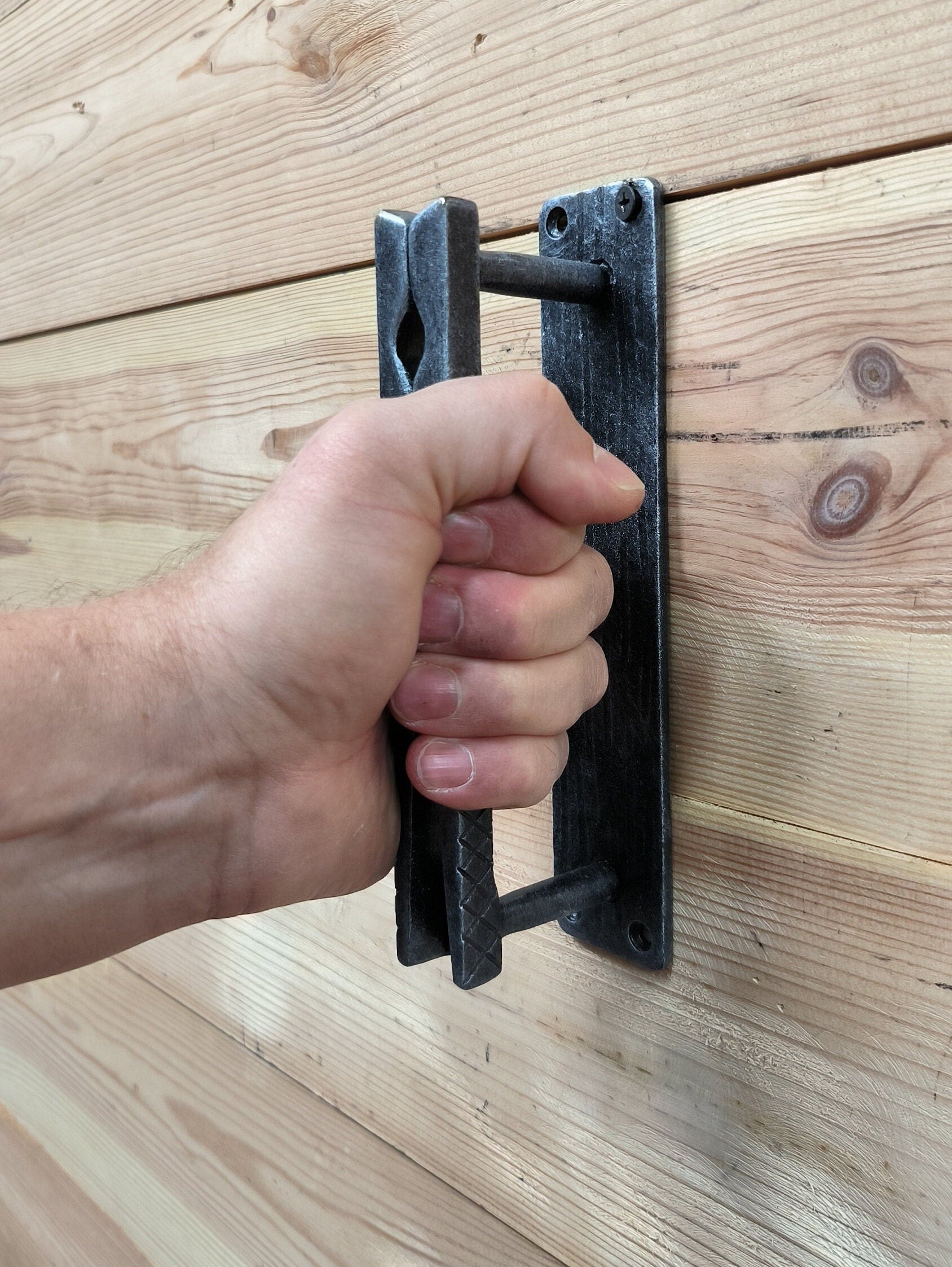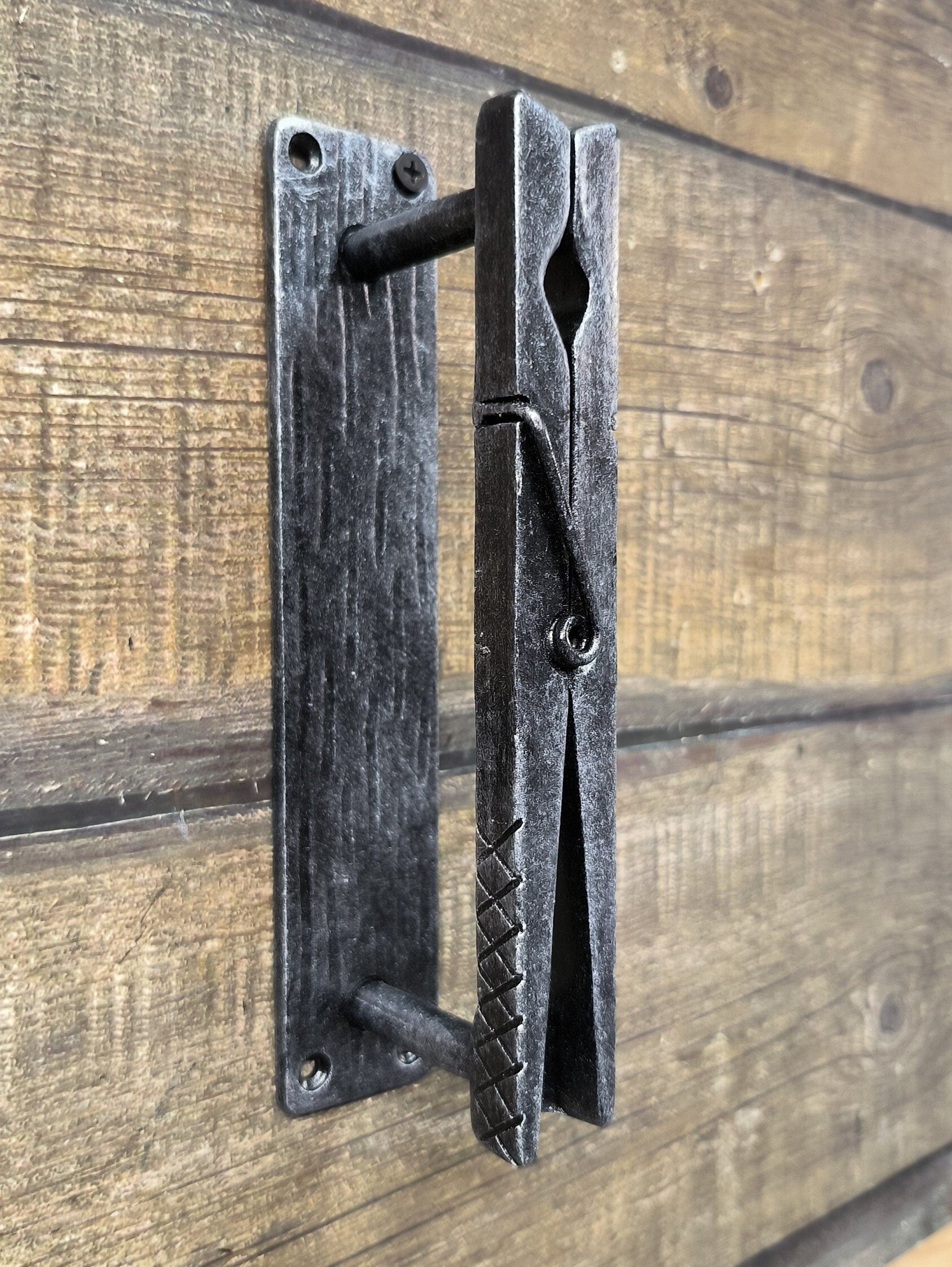 Clothespin Iron Door Handle: Unique Hand-Forged Barn Decor