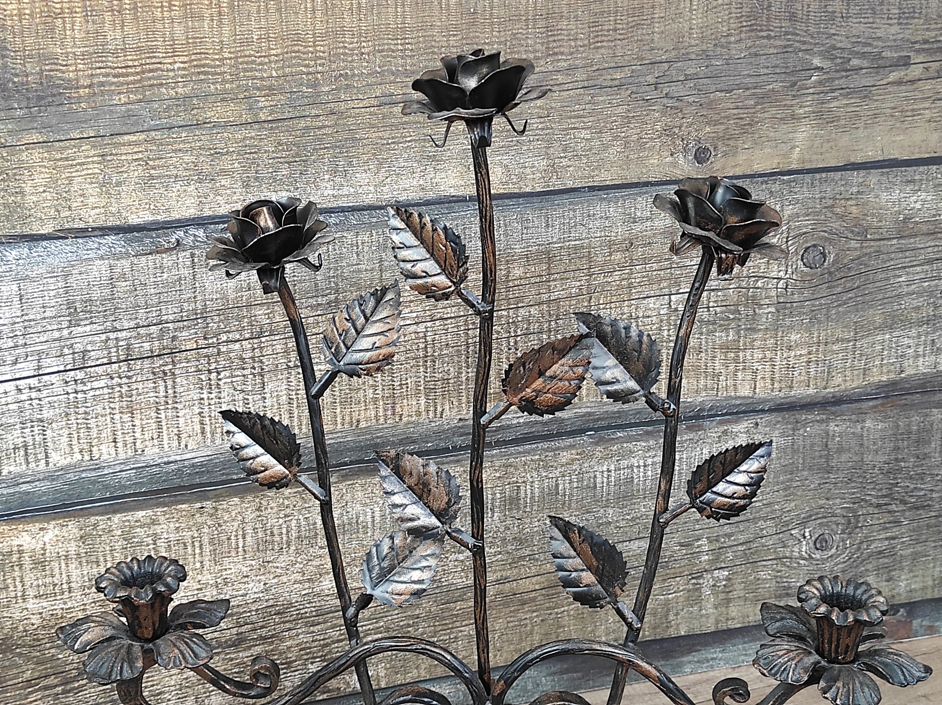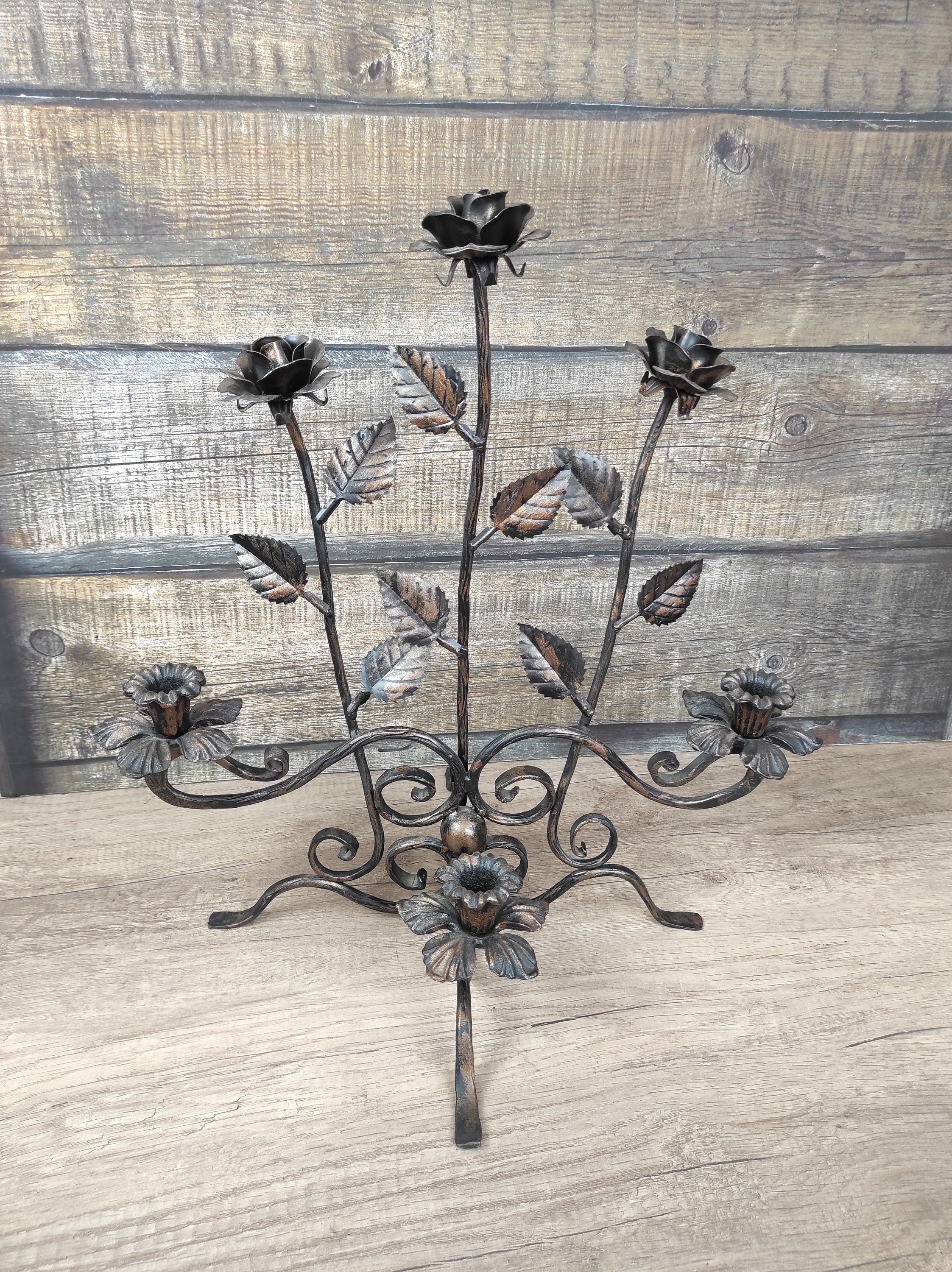 Handmade metal forged candlestick with roses, Iron candlestick, Forged candlestick, Forged rose, Forged flower, Rose candlestick, Iron rose, Handmade candlestick, Flower candlestick, Iron gifts, Forged sculpture, Iron ornaments, Home decor, Birthday gift,