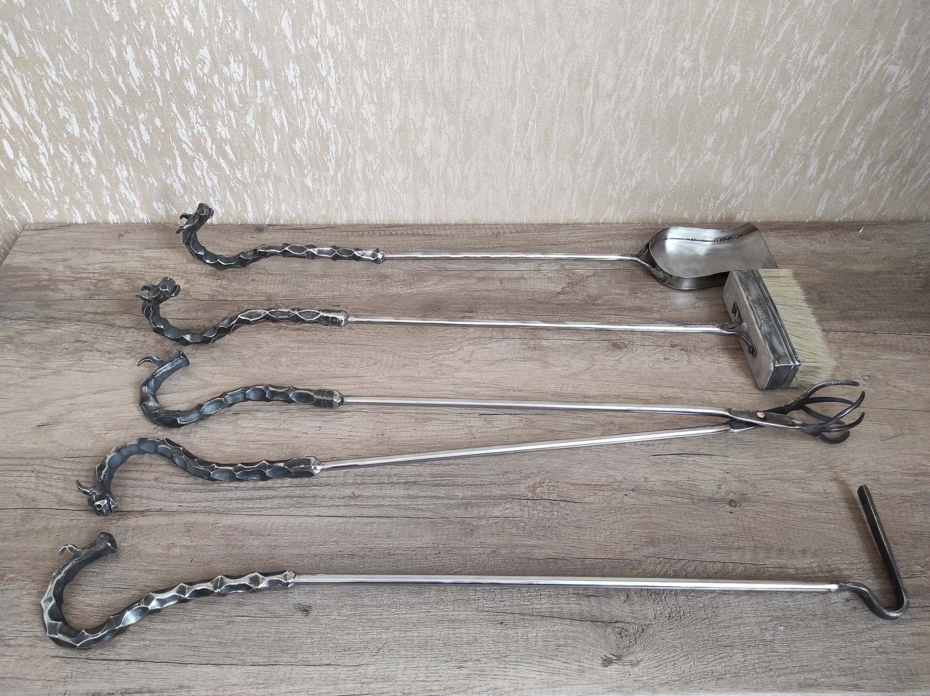 I made the fireplace tools set from stainless steel. This is a hand
