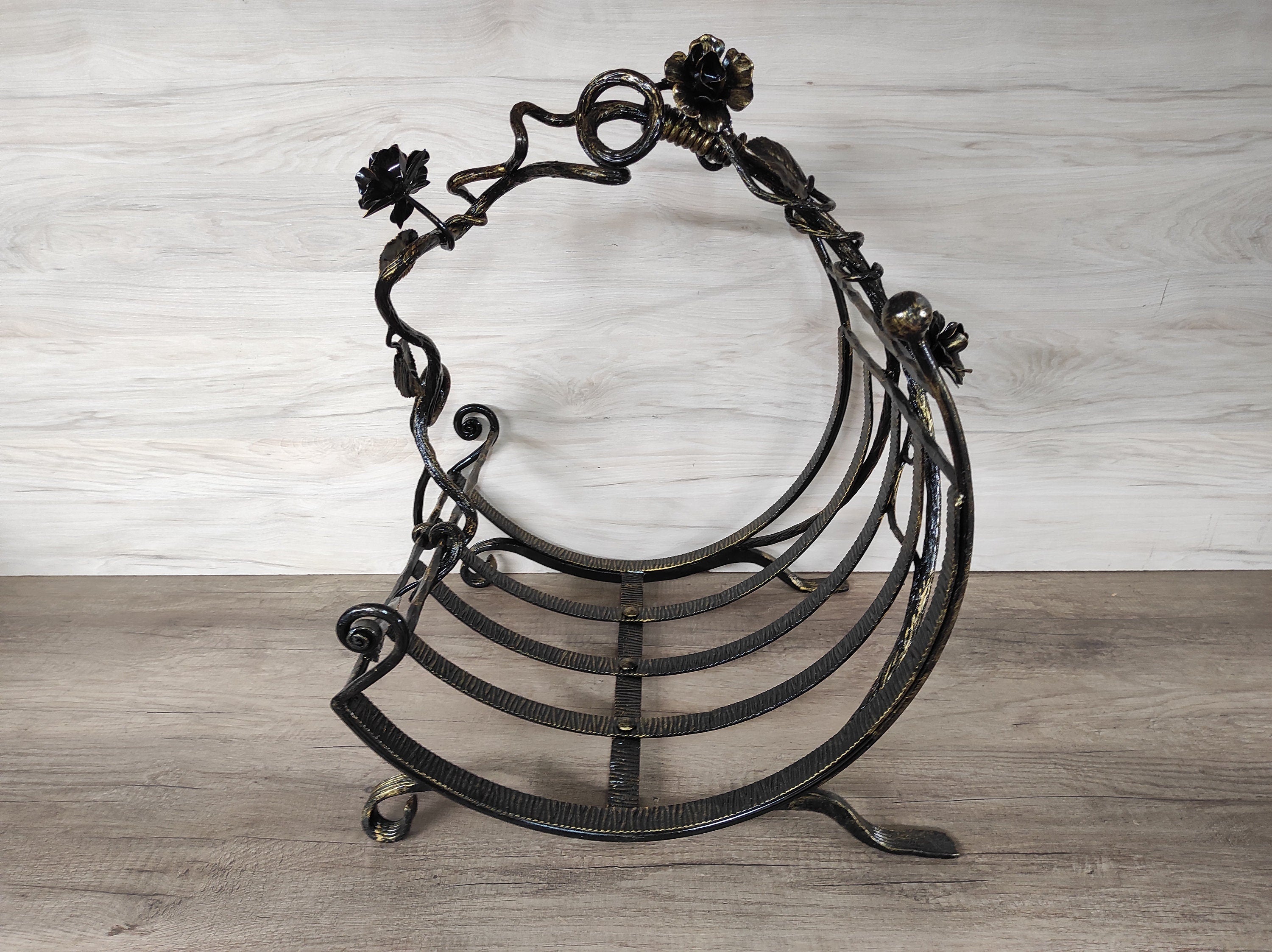 Handmade Wrought Iron Firewood Basket: Fireplace Log Holder