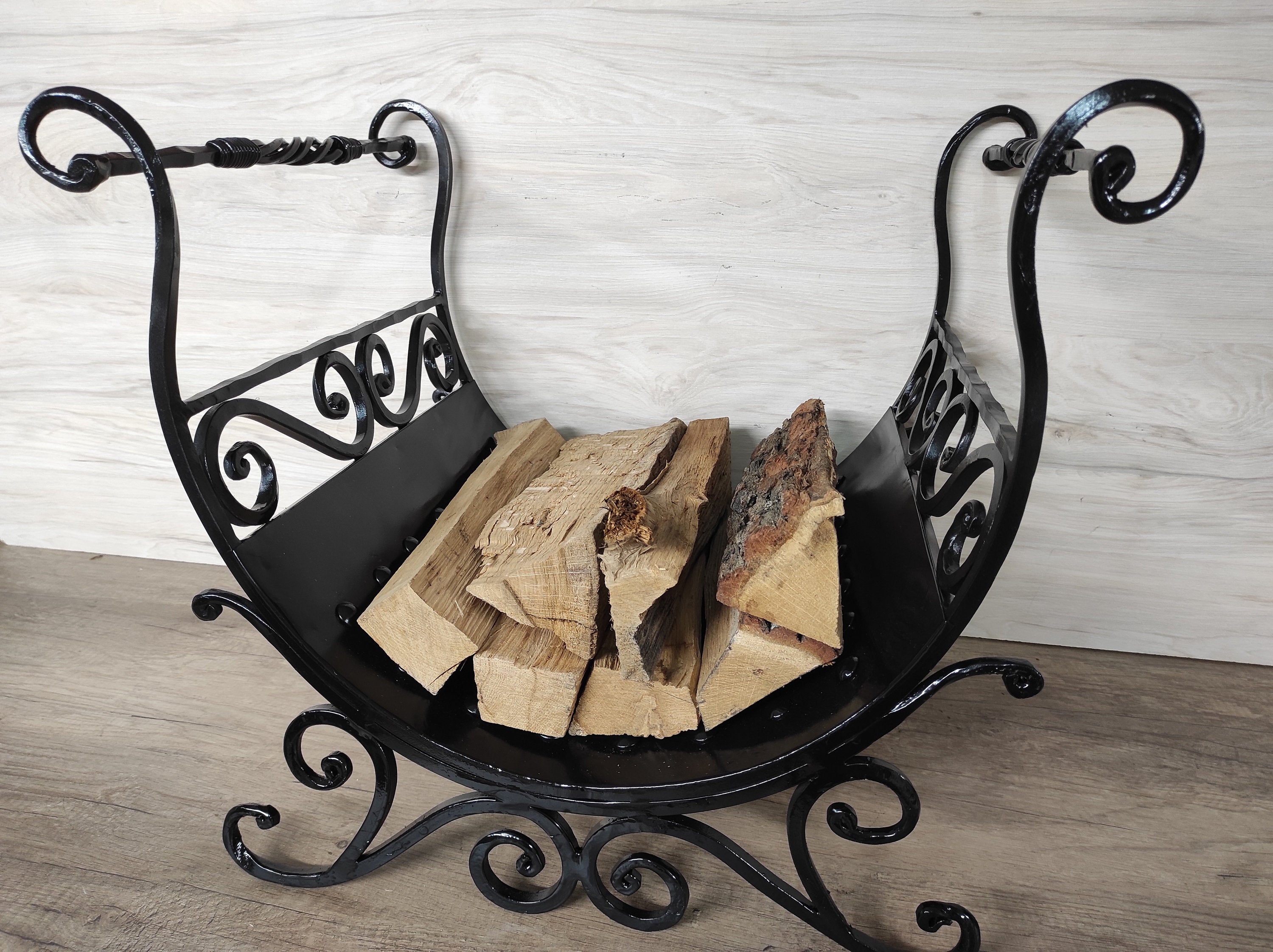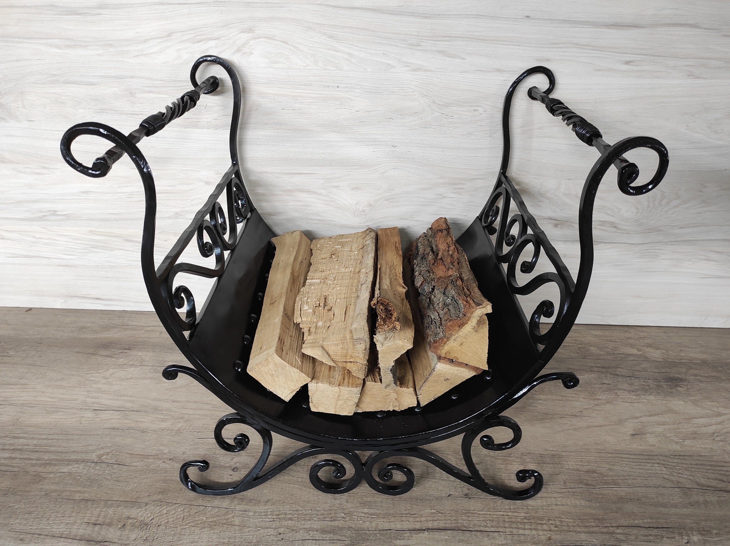 Firewood storage, fireplace accessories, basket for fireplace