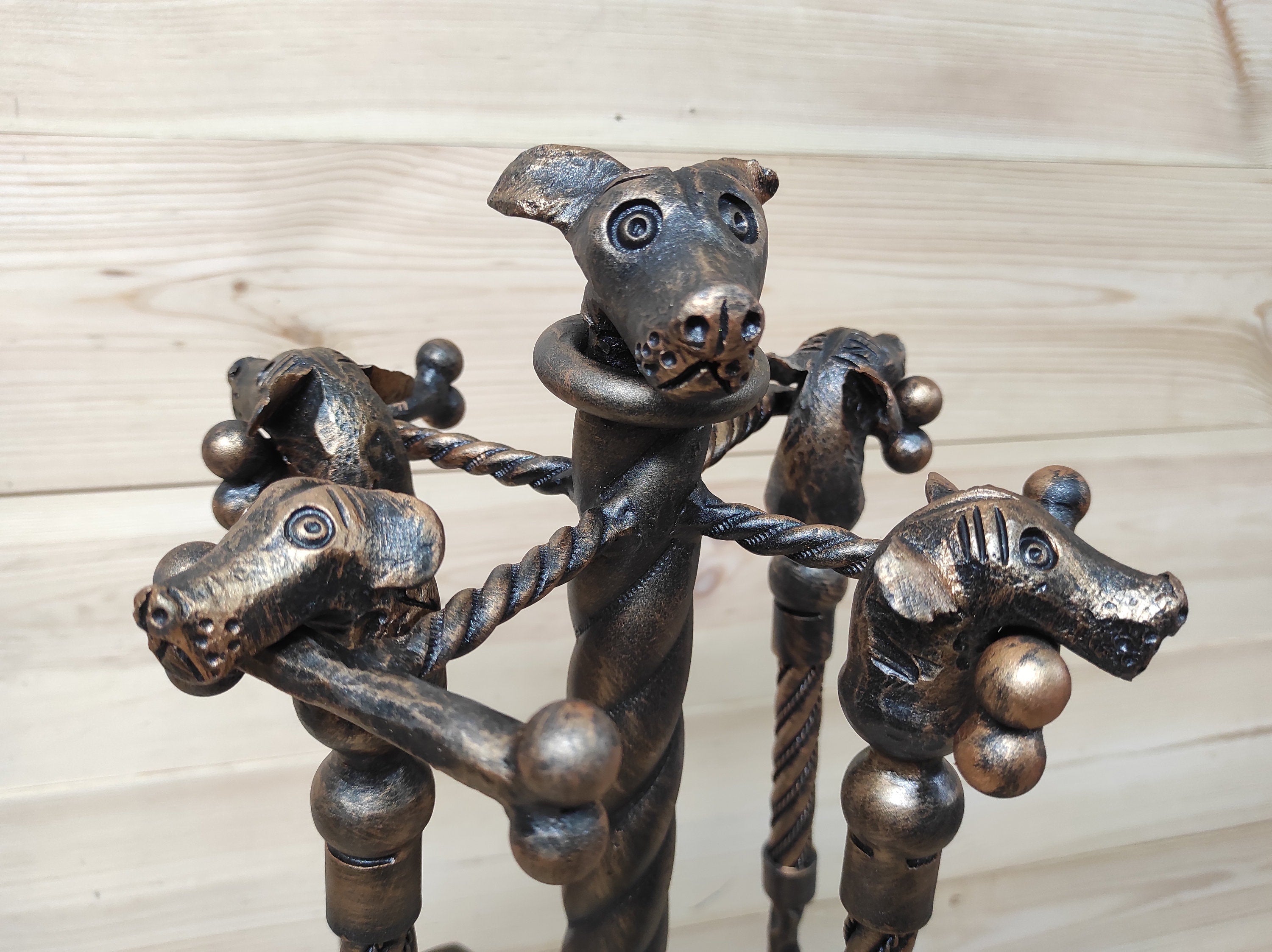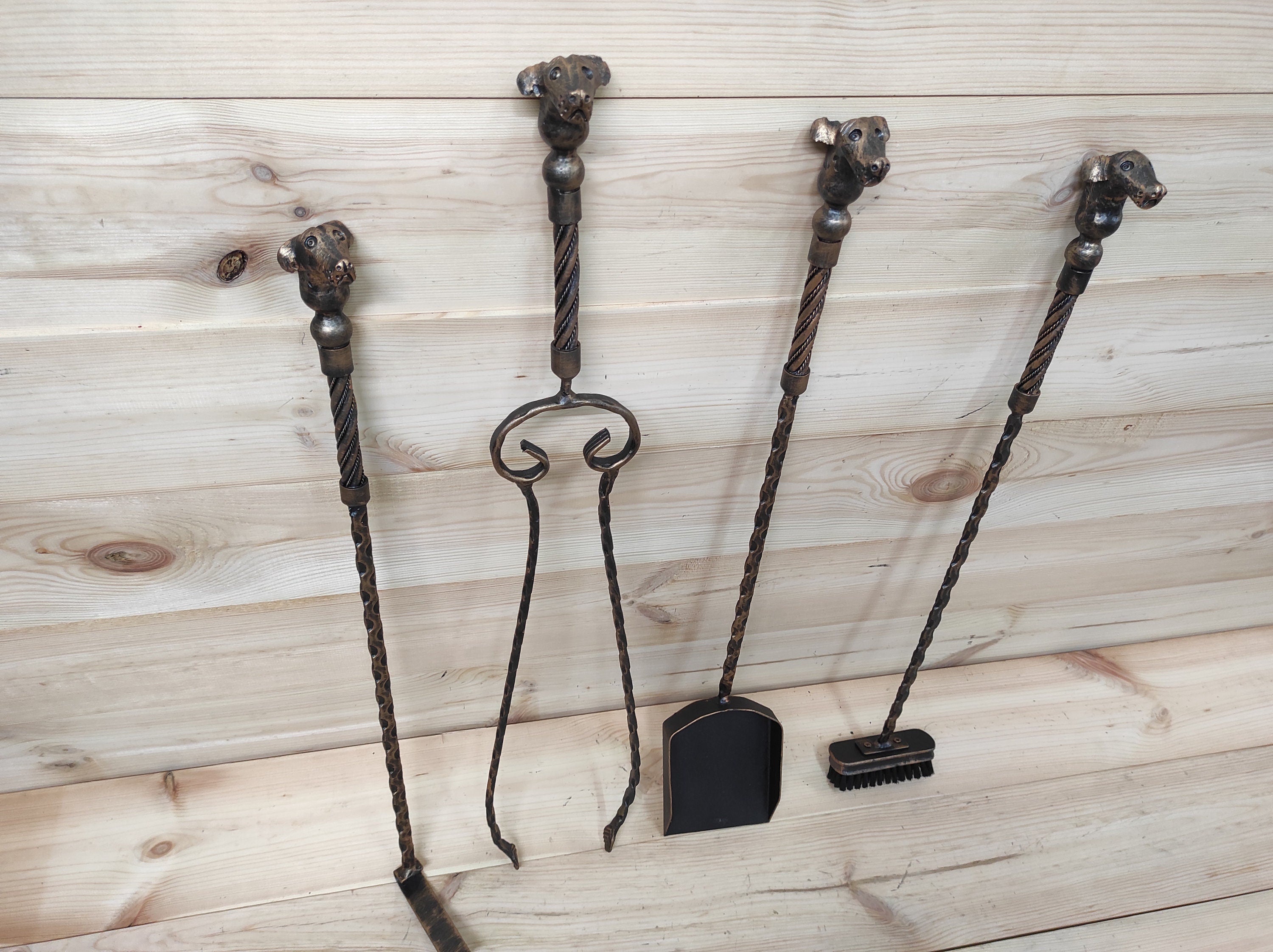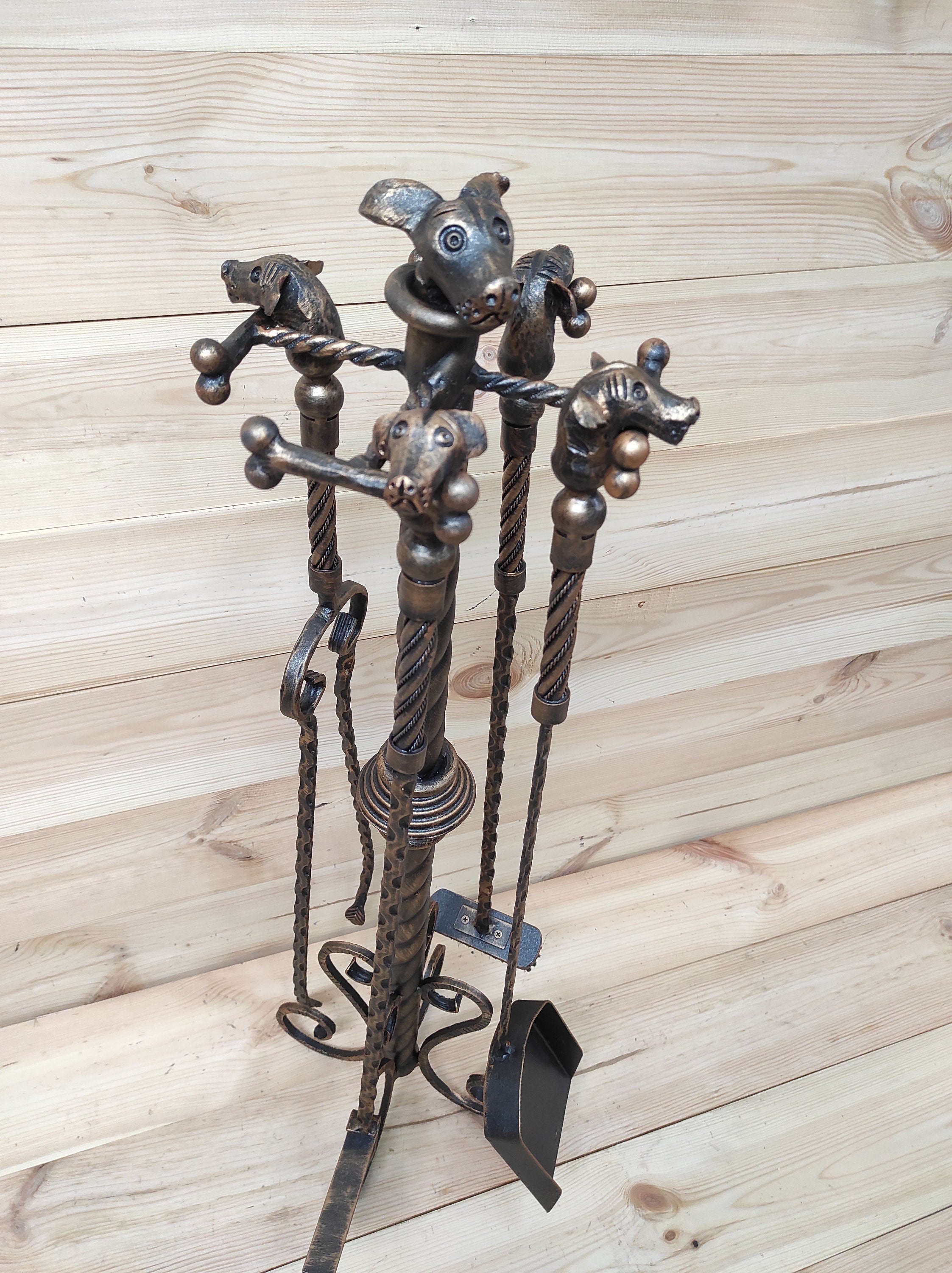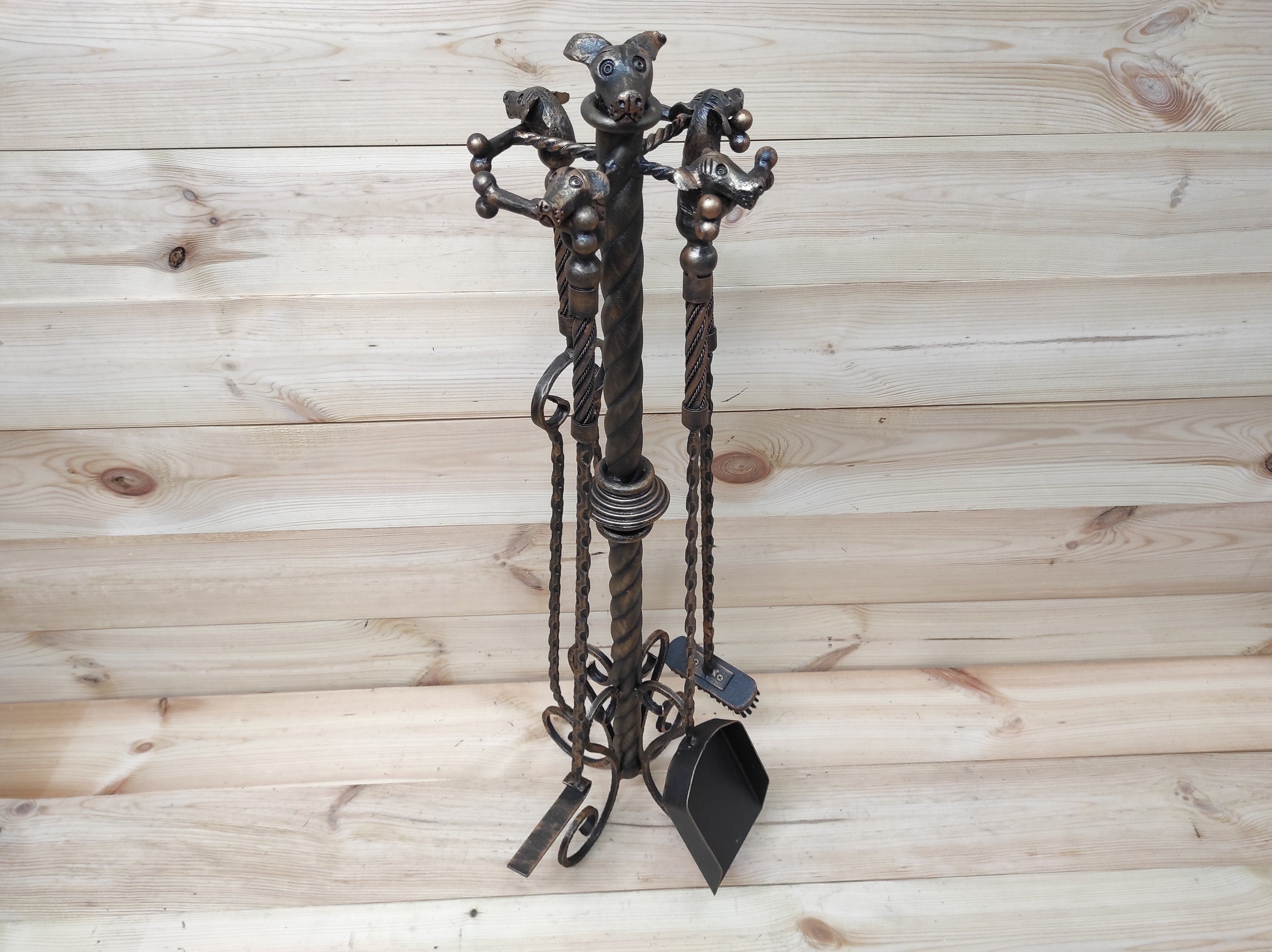 Forged fireplace tools set, Dogs, fireplace poker, fireplace tongs, shovel, broom, floor stand, hand forged, fireplace gift, fireplace tools