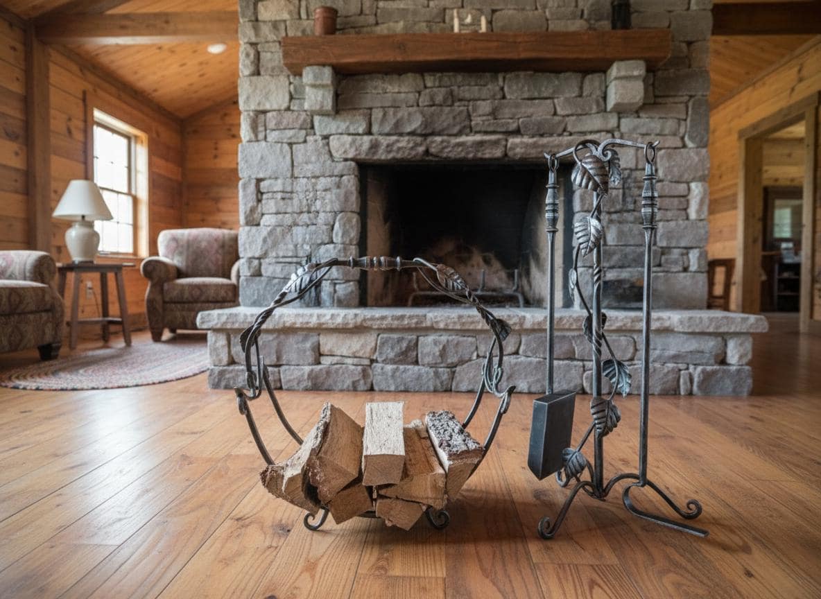 Hand Forged Fireplace Tool Set with Firewood Storage