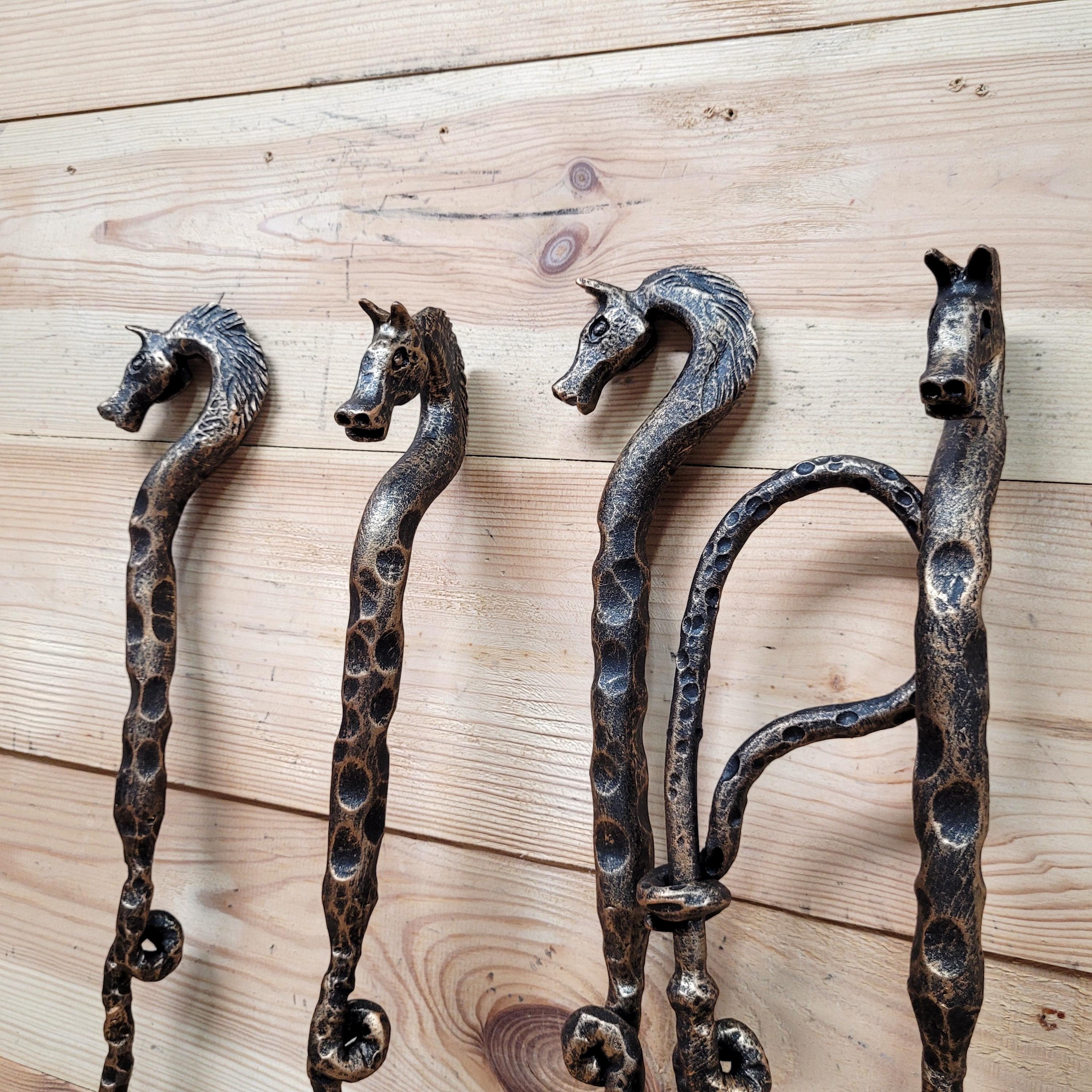 Add rustic elegance to your hearth with this hand-forged Horse Fireplace Tool Set. Crafted from solid wrought iron, the stand features a horseshoe-shaped base and 4 tools with detailed horse head handles – shovel, brush, poker, and tongs.