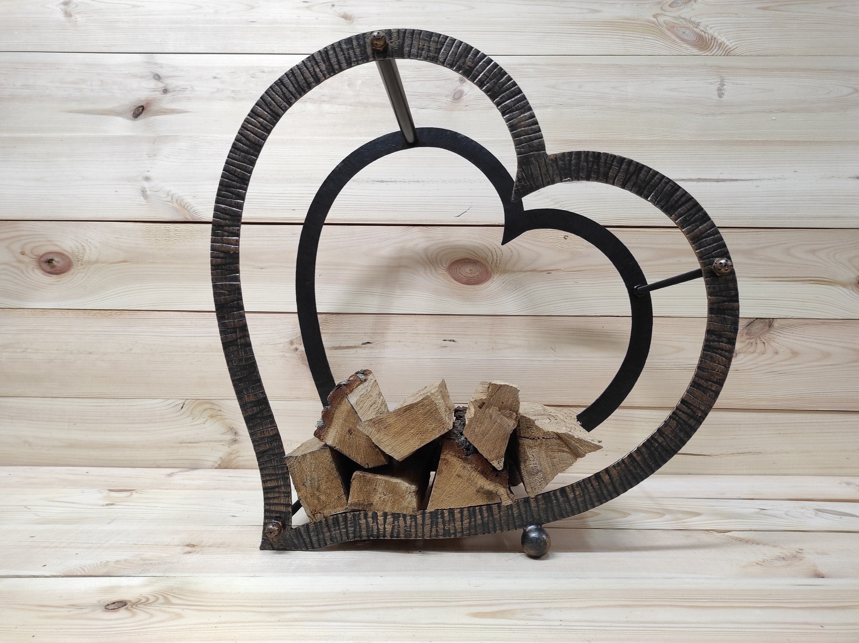 Heart Firewood Rack: Handmade Wrought Iron Log Holder