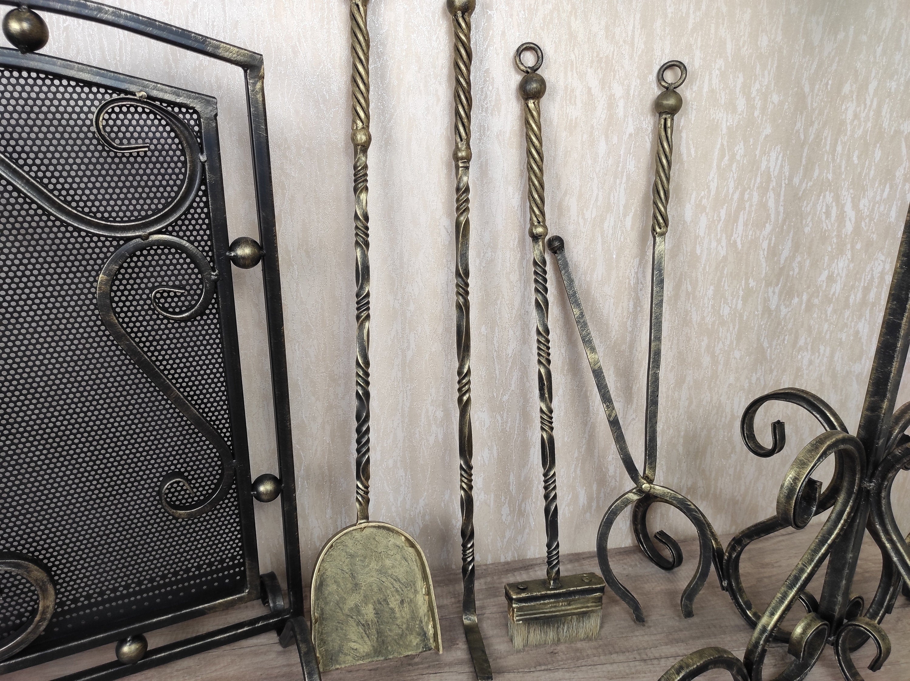 Set of forged fireplace tools and fireplace screen, Fireplace poker, Fireplace Tongs, Shovel, Broom, Hand Forged, Fireplace Gift, Fireplace Tool, Fire Poker, Fire Tool,