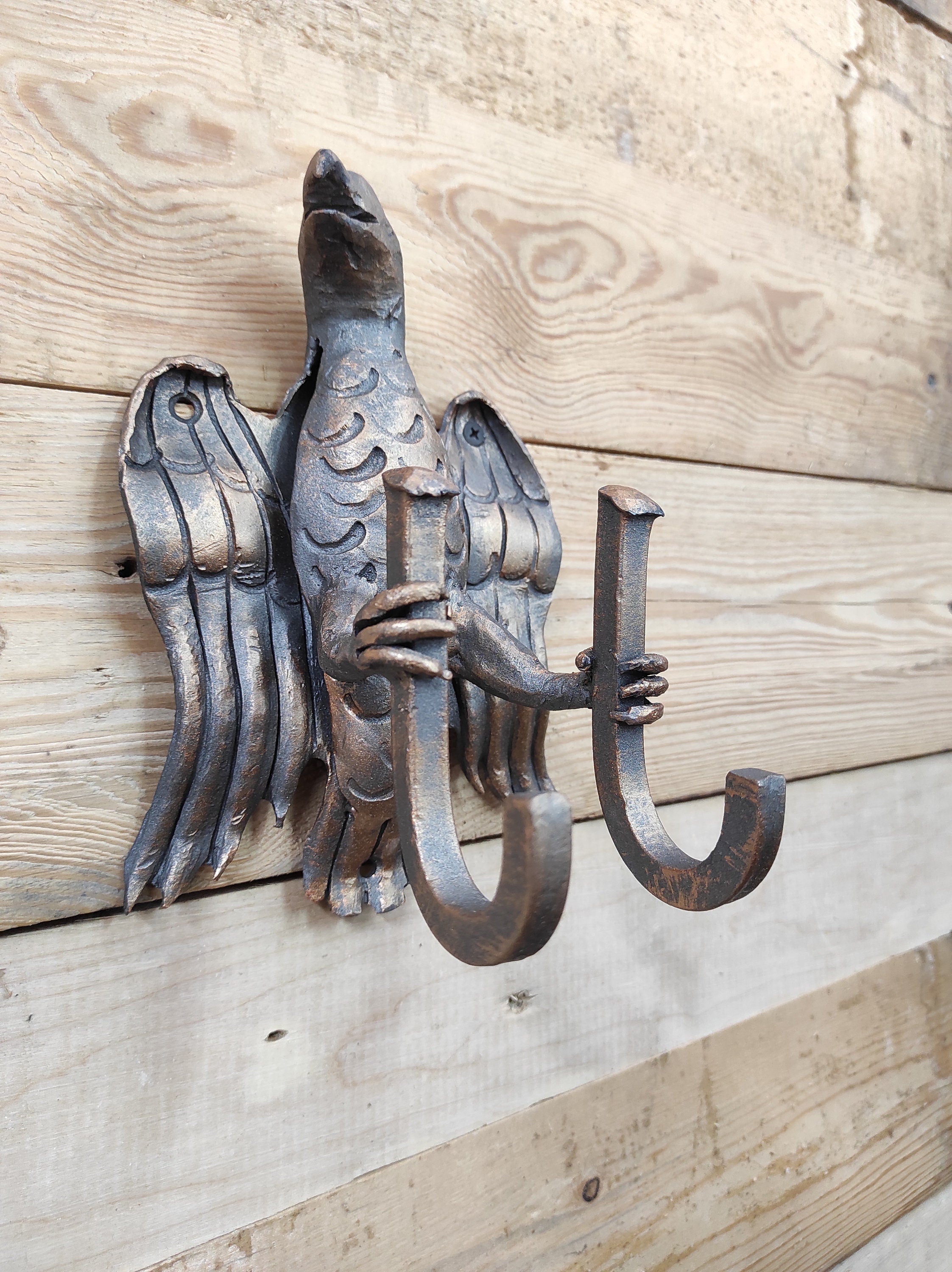 Handmade Forged Eagle Double Wall Hook: Metal Clothes Hanger