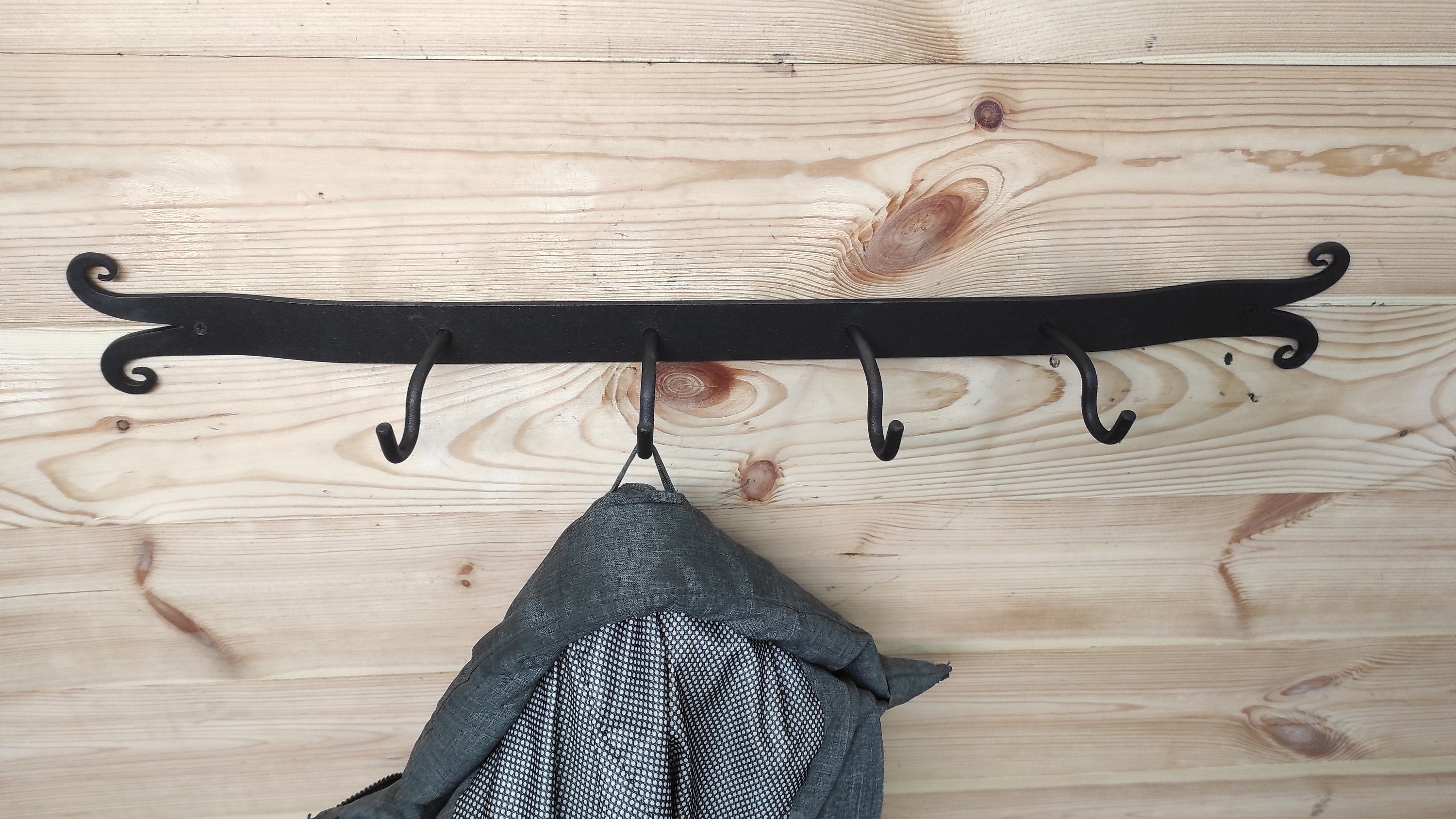 Handmade Metal Coat Hanger Rack: Forged Hallway Organizer