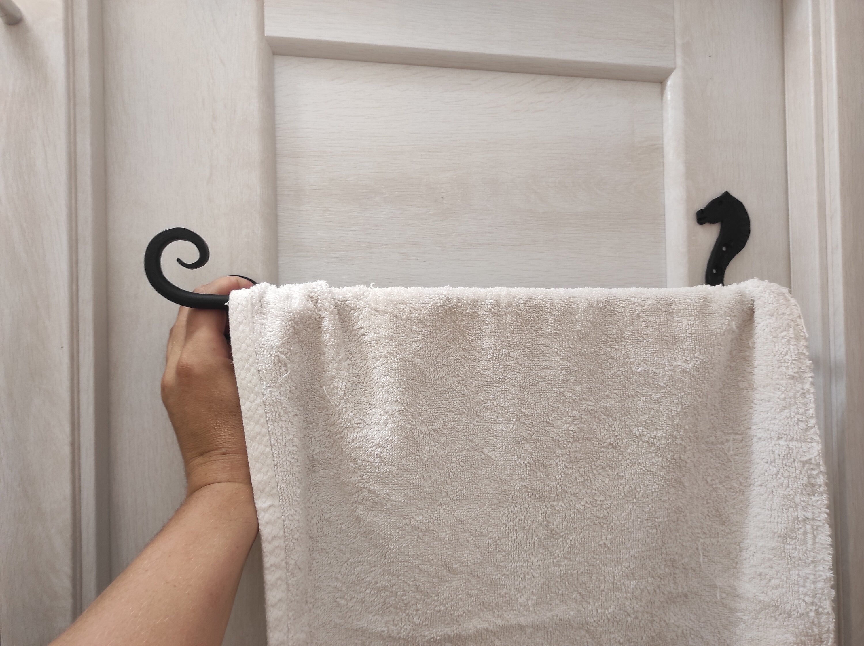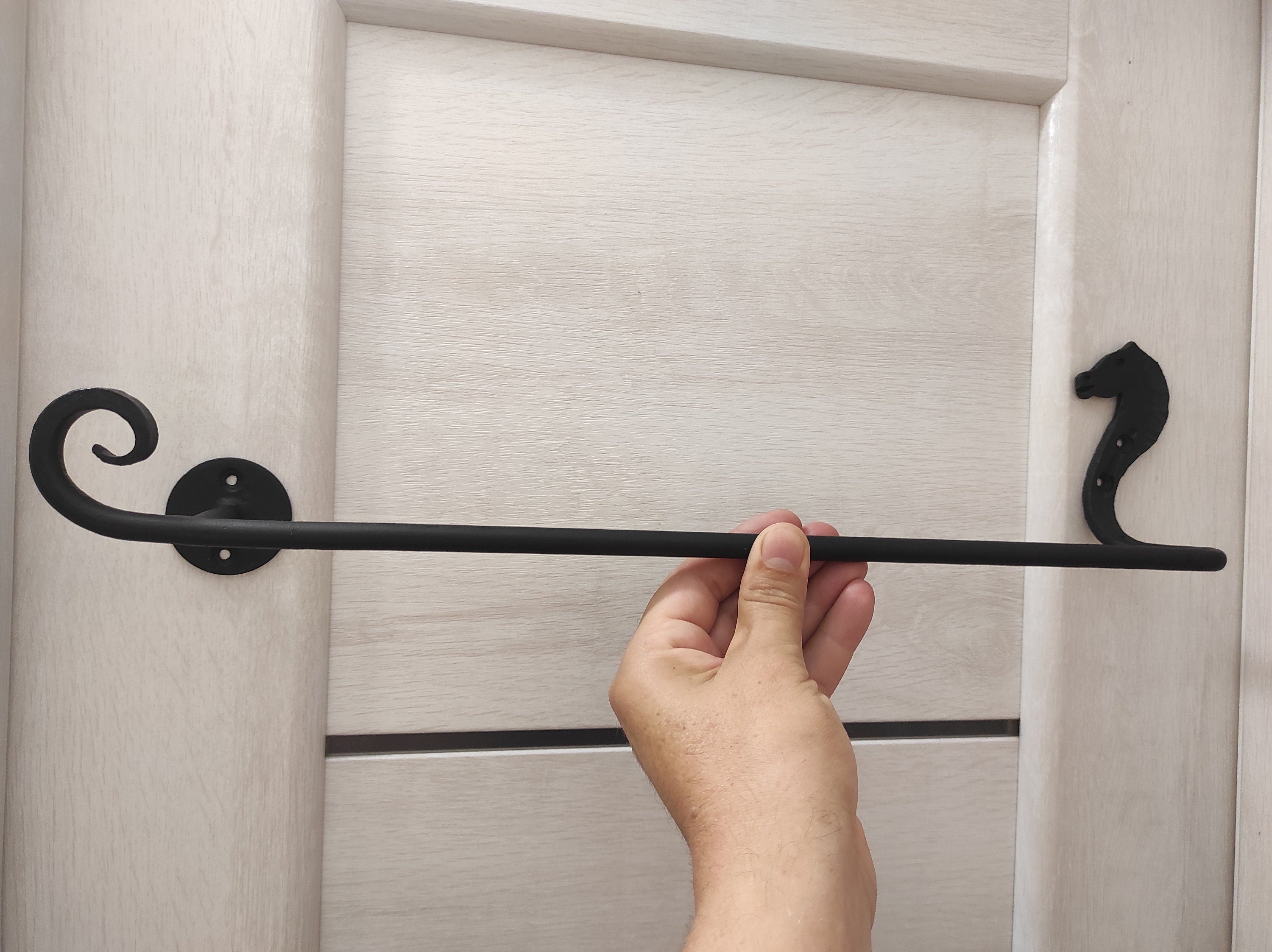 I made this towel rack custom in black color as you see on the pic, but you can also choose one of 4 colors of the towel holder (bronze, chrome-plated silver, gold patina, black), please contact me when ordering and I will paint it in the color you want without additional fees!