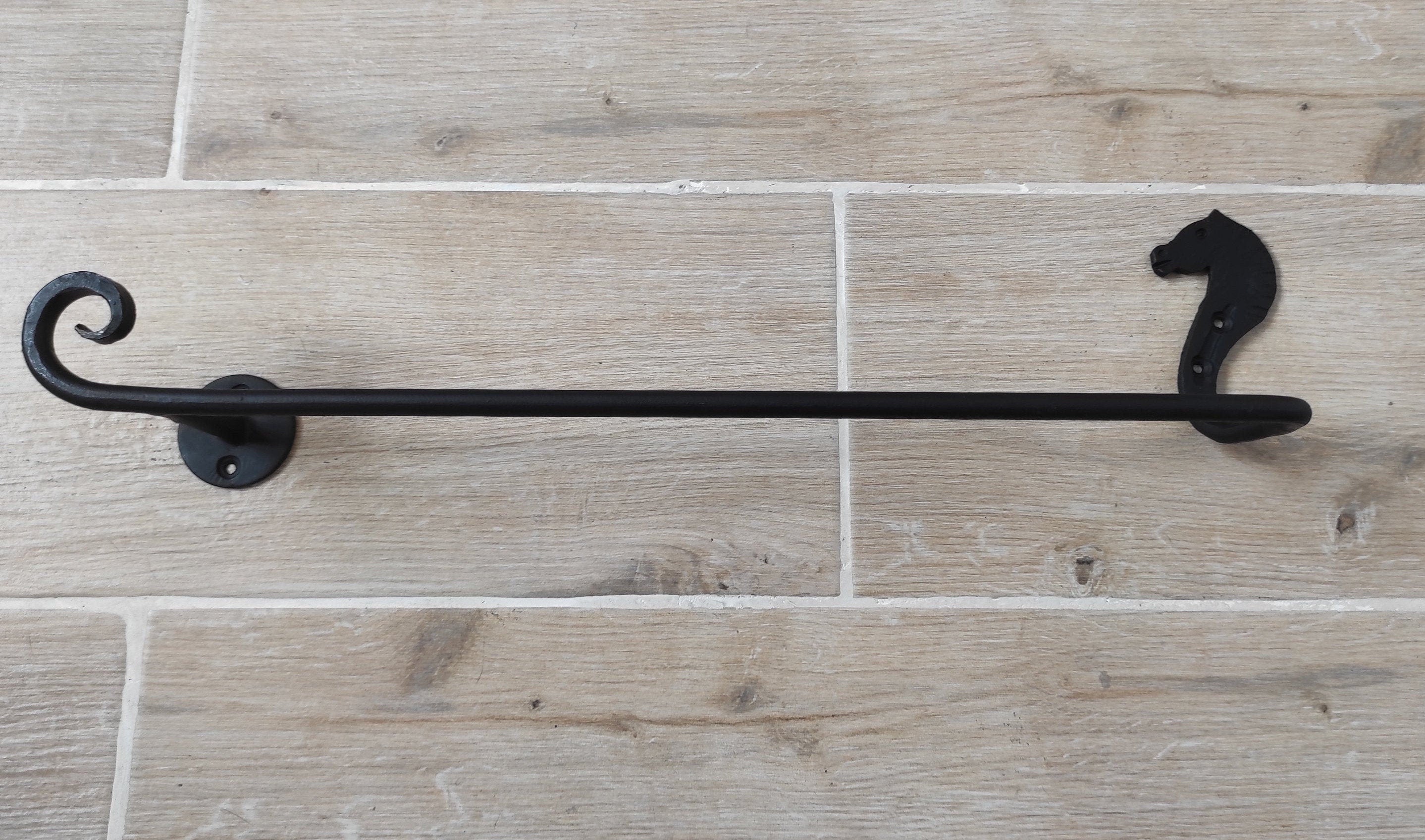 Hand Forged Horse Towel Rack: Black Wrought Iron Bathroom Decor