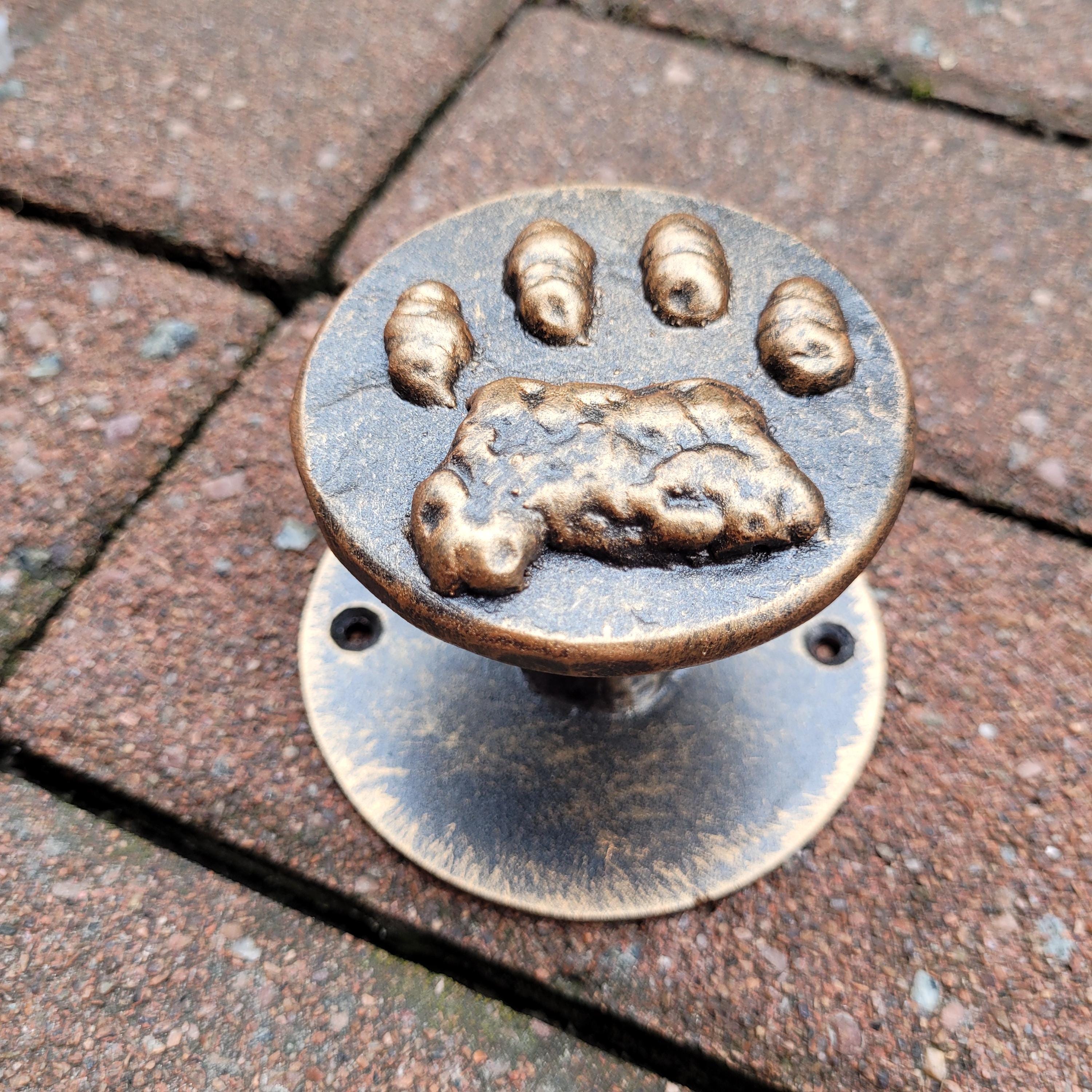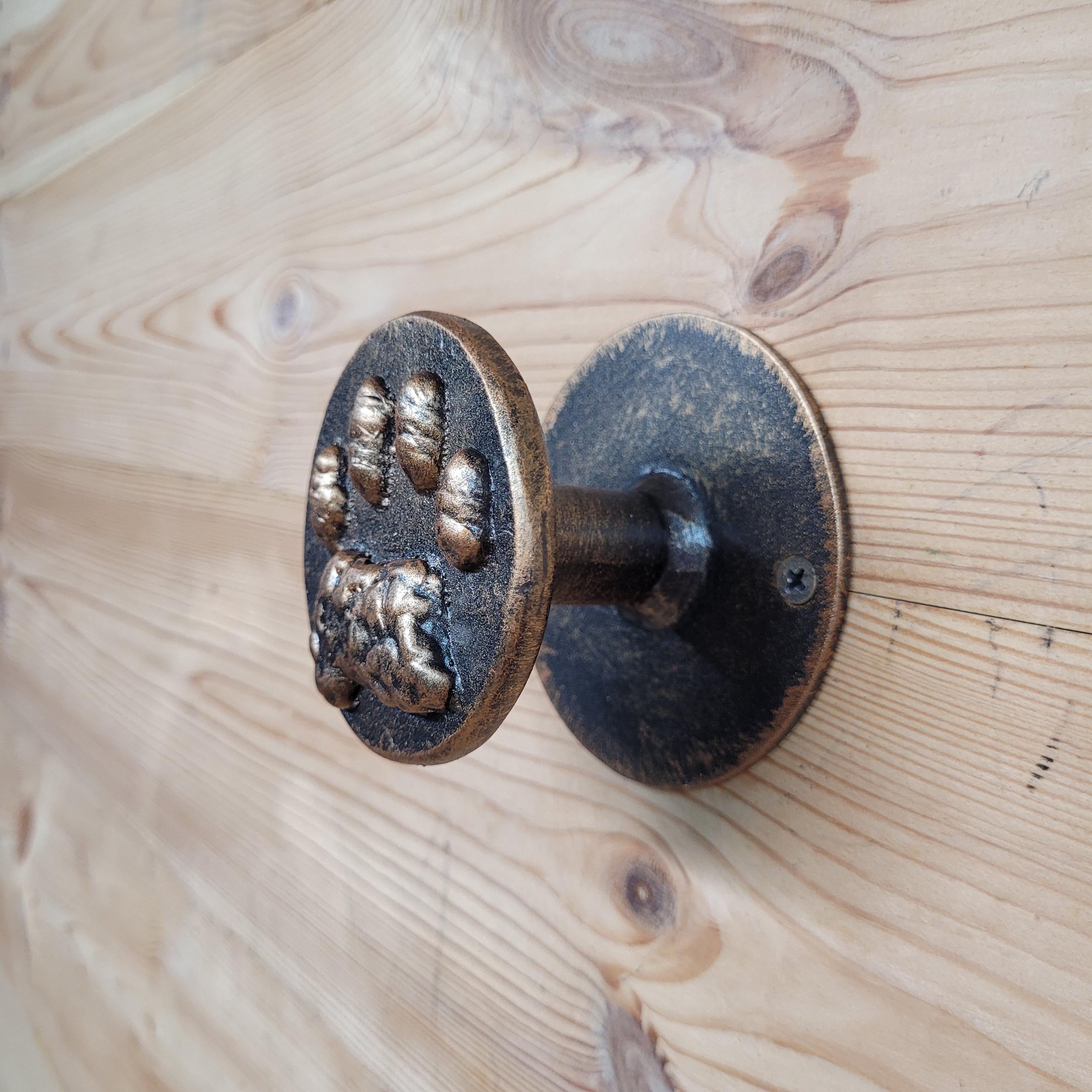Dog Paw Door Handle – Hand-Forged Iron Knob Painted Bronze Color, Rustic Door Pull, Pet Lovers Gift, Handmade Hardware