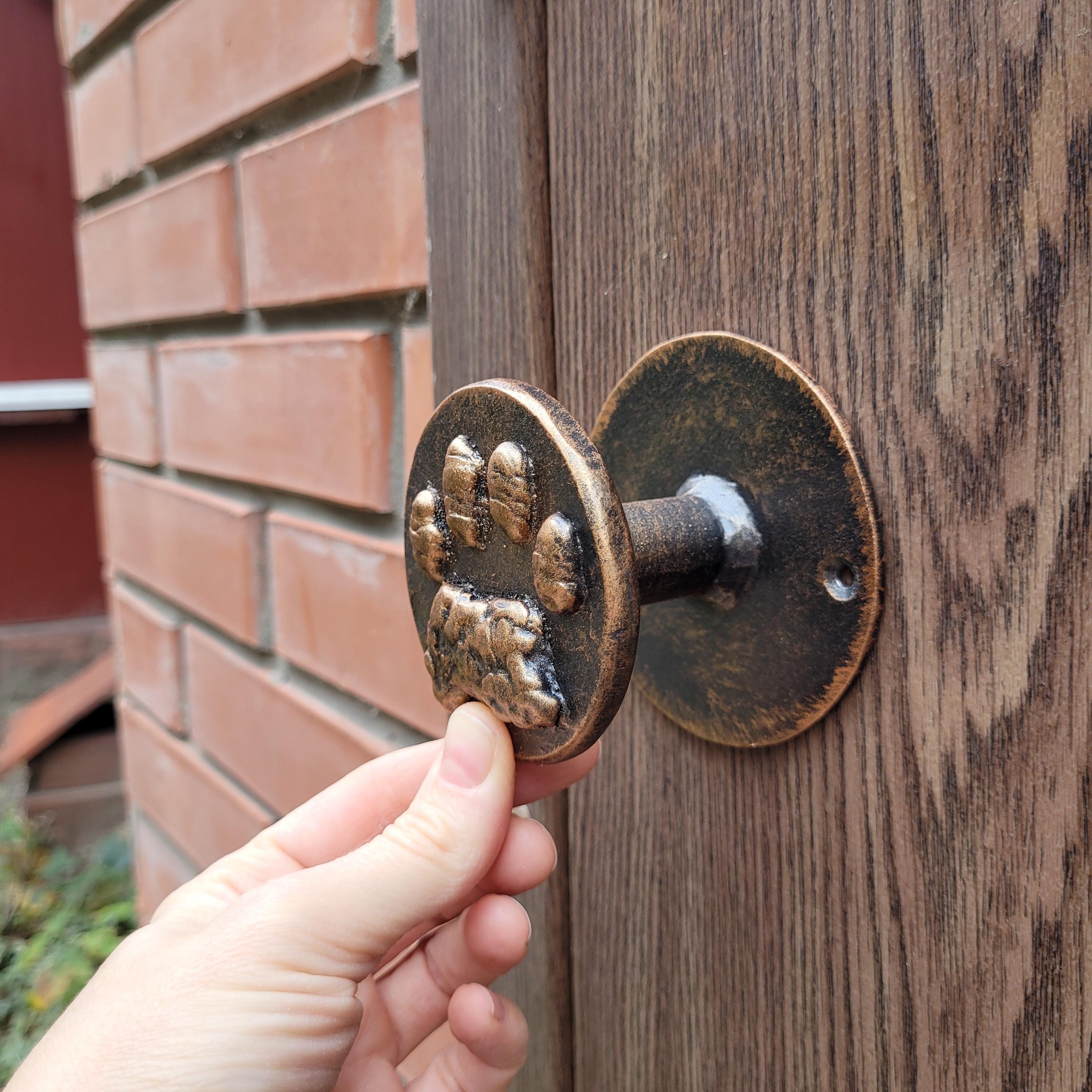 Bring a touch of character and warmth to your home with this hand-forged iron door handle featuring a dog paw print design.