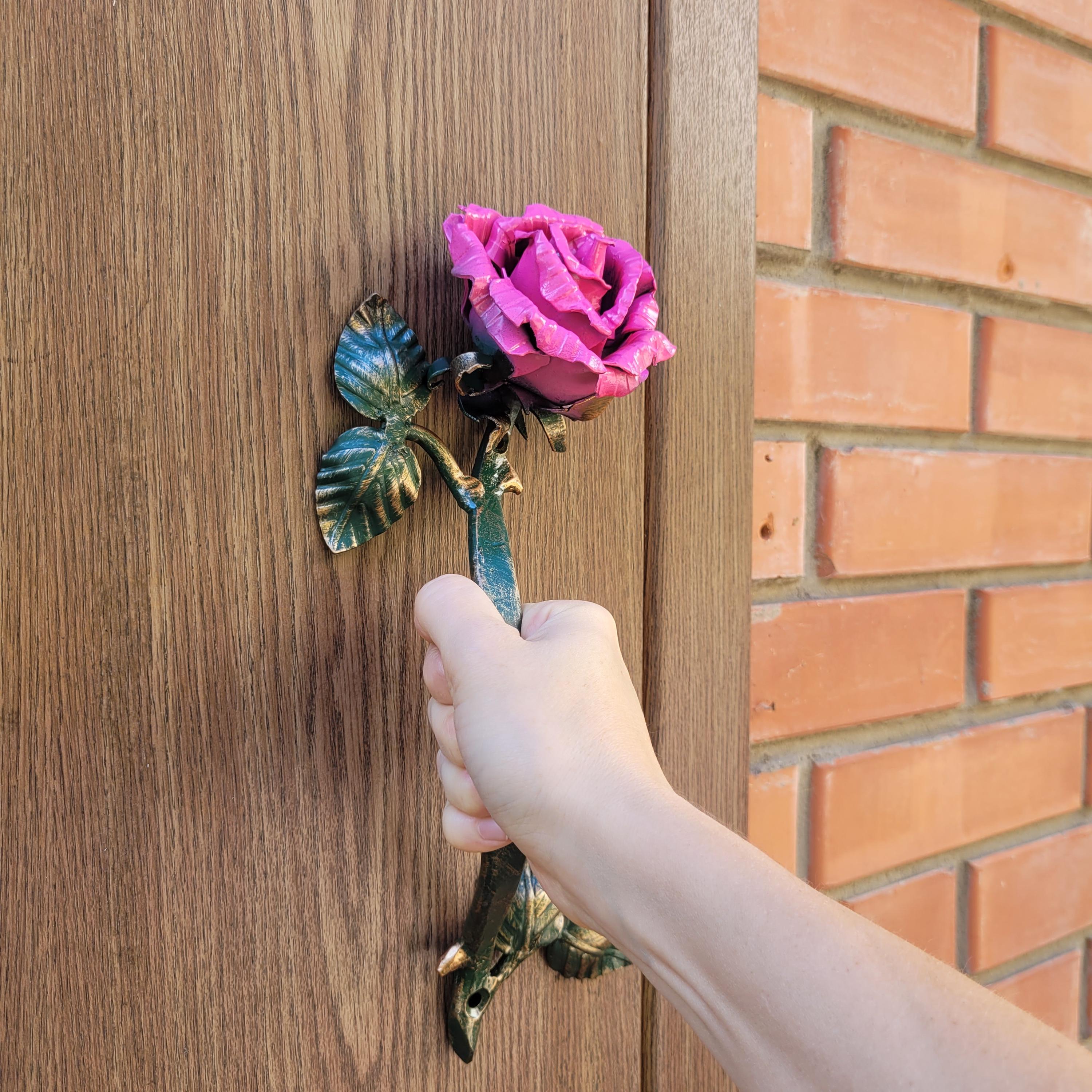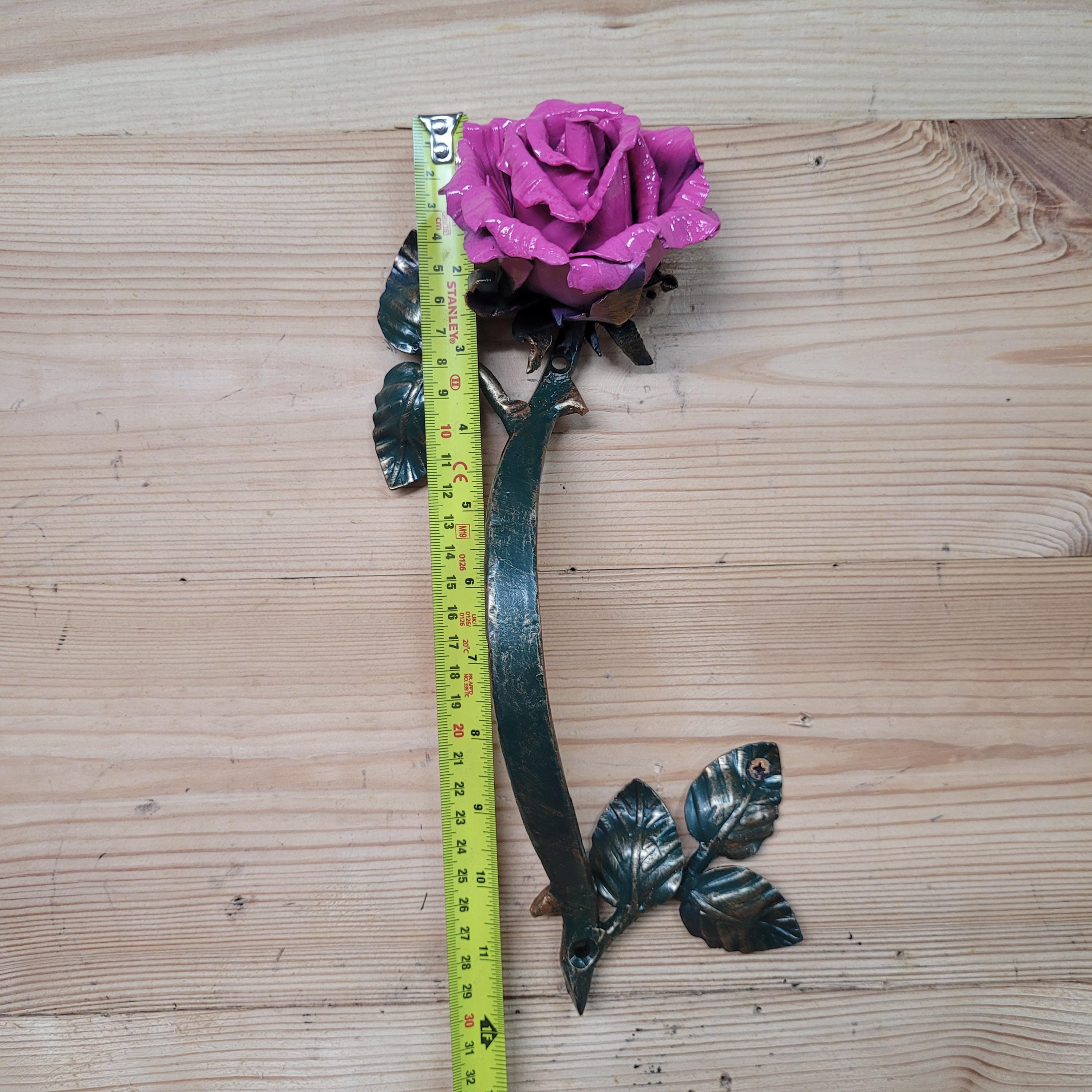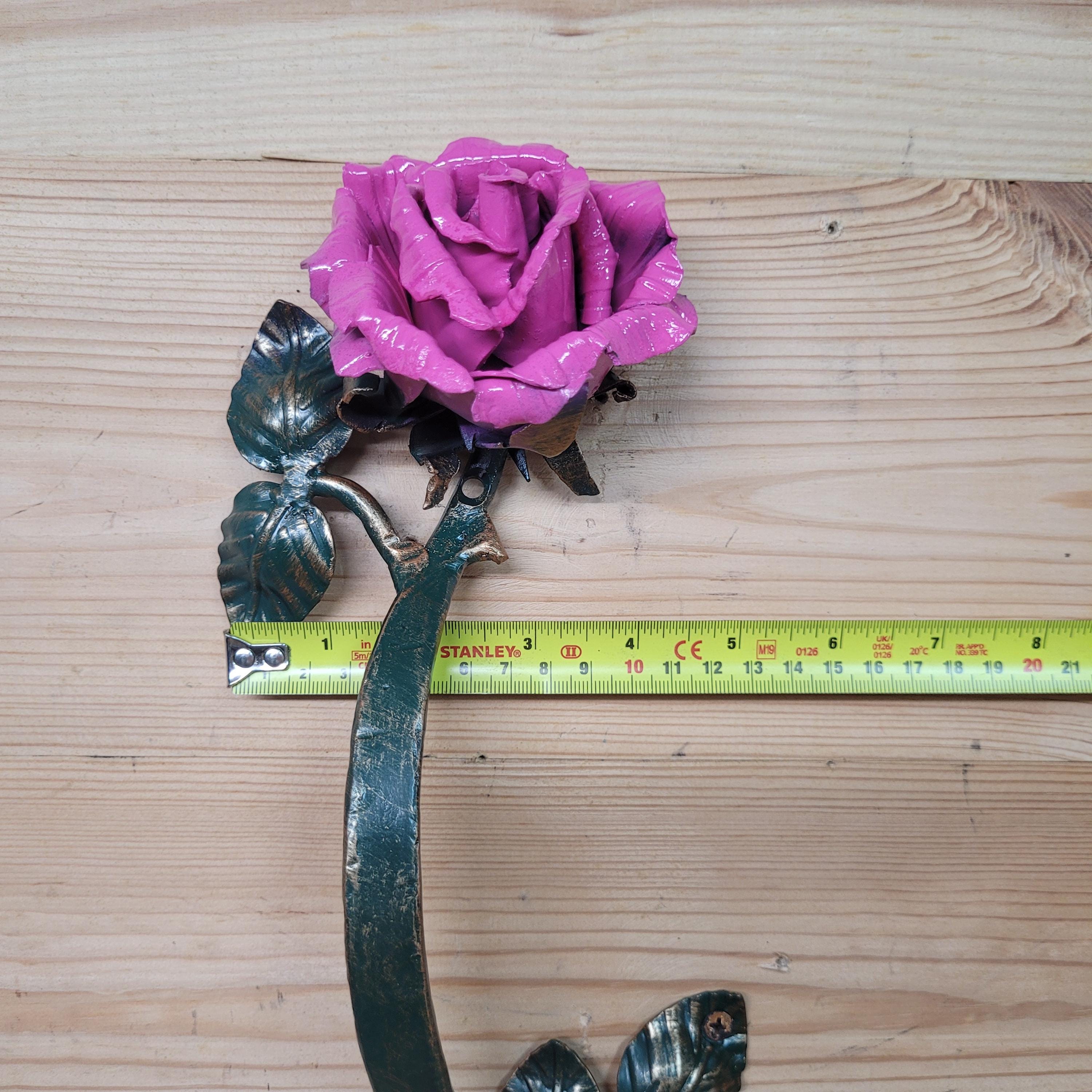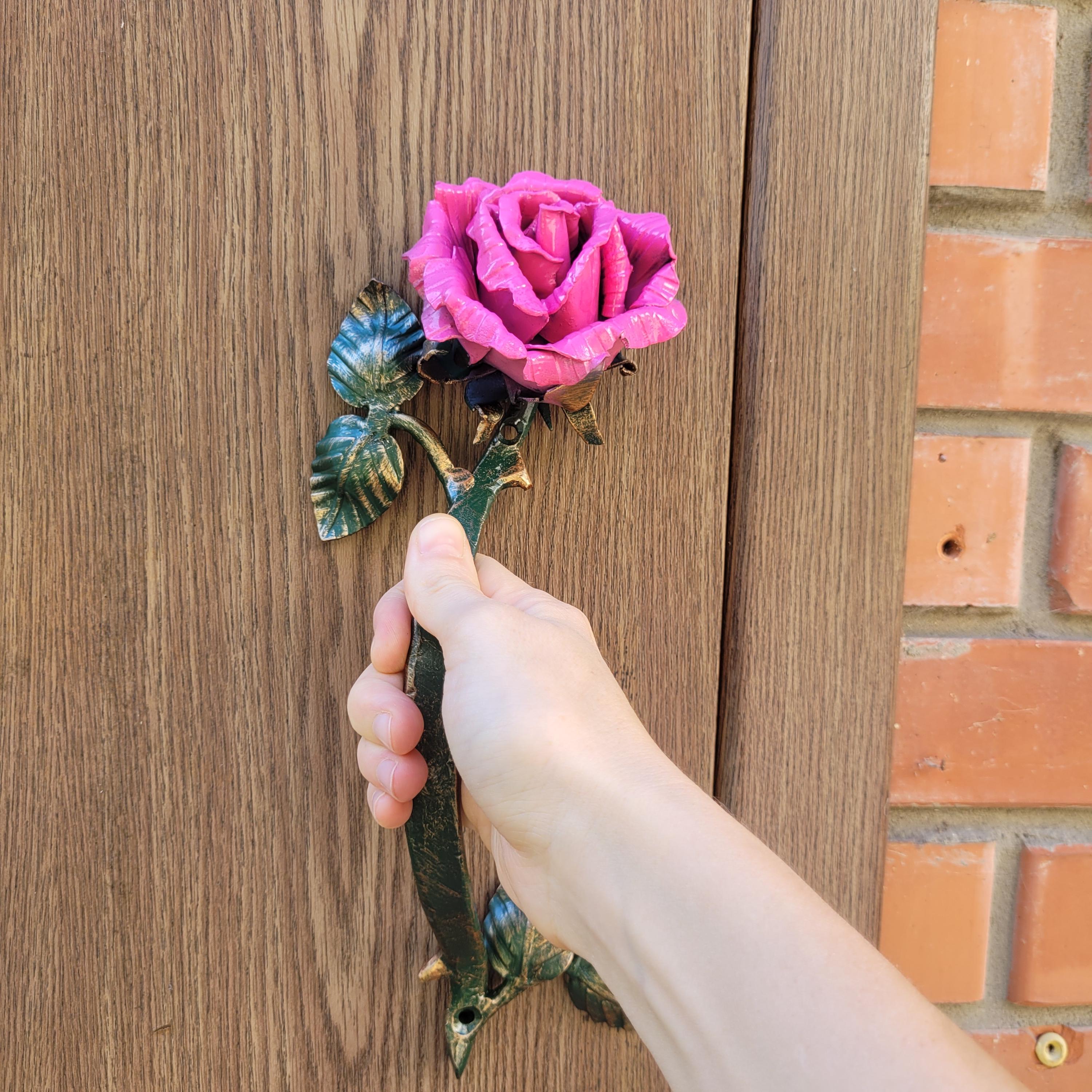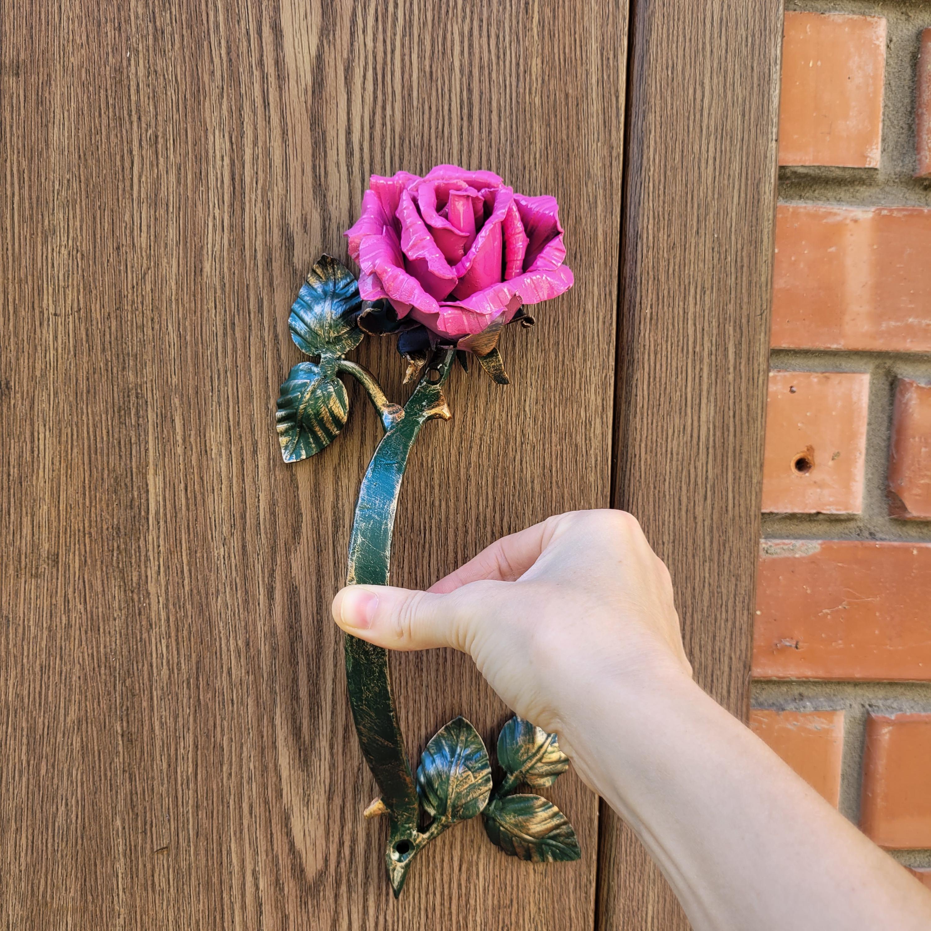 Hand Forged Pink Rose Door Pull: Metal Flower Handle