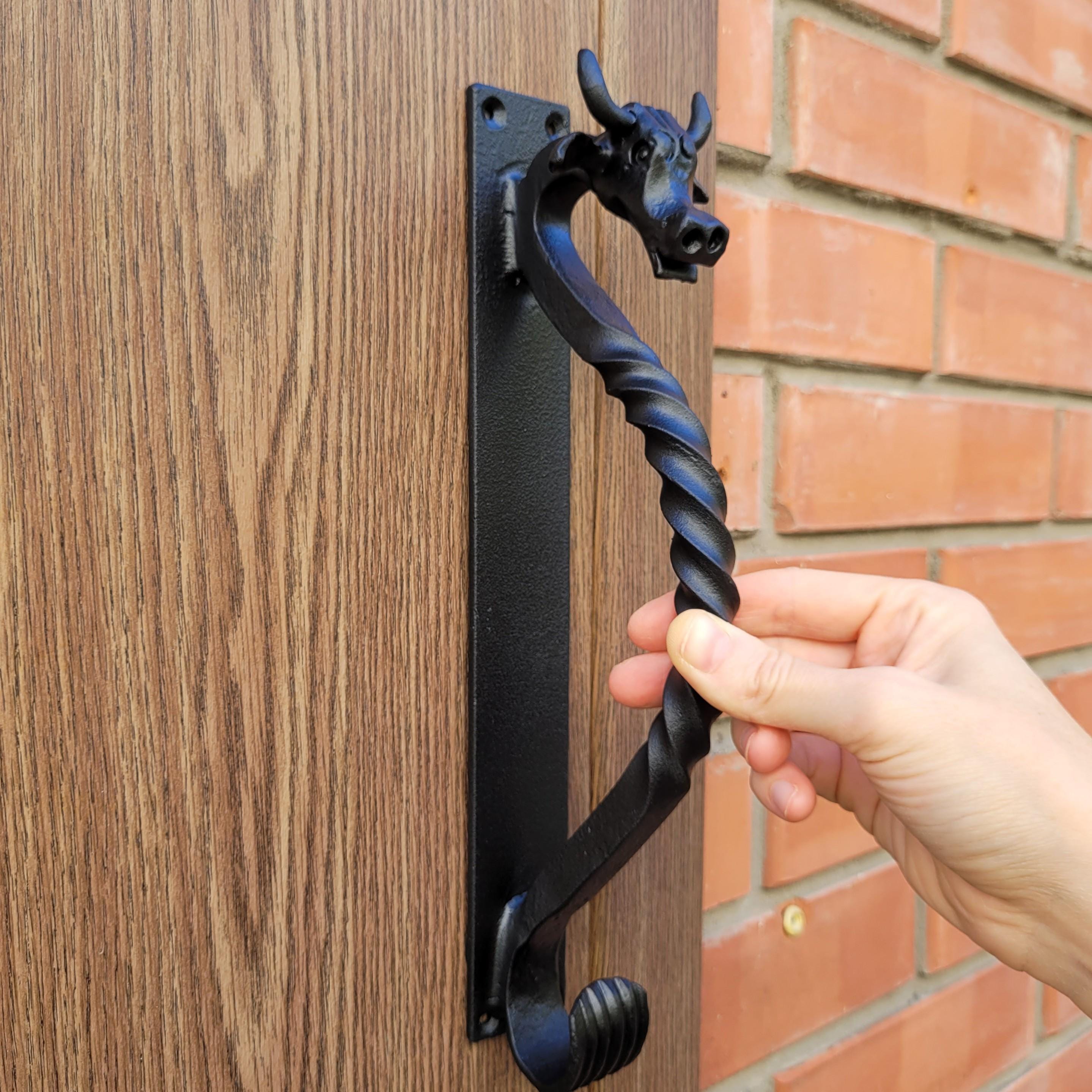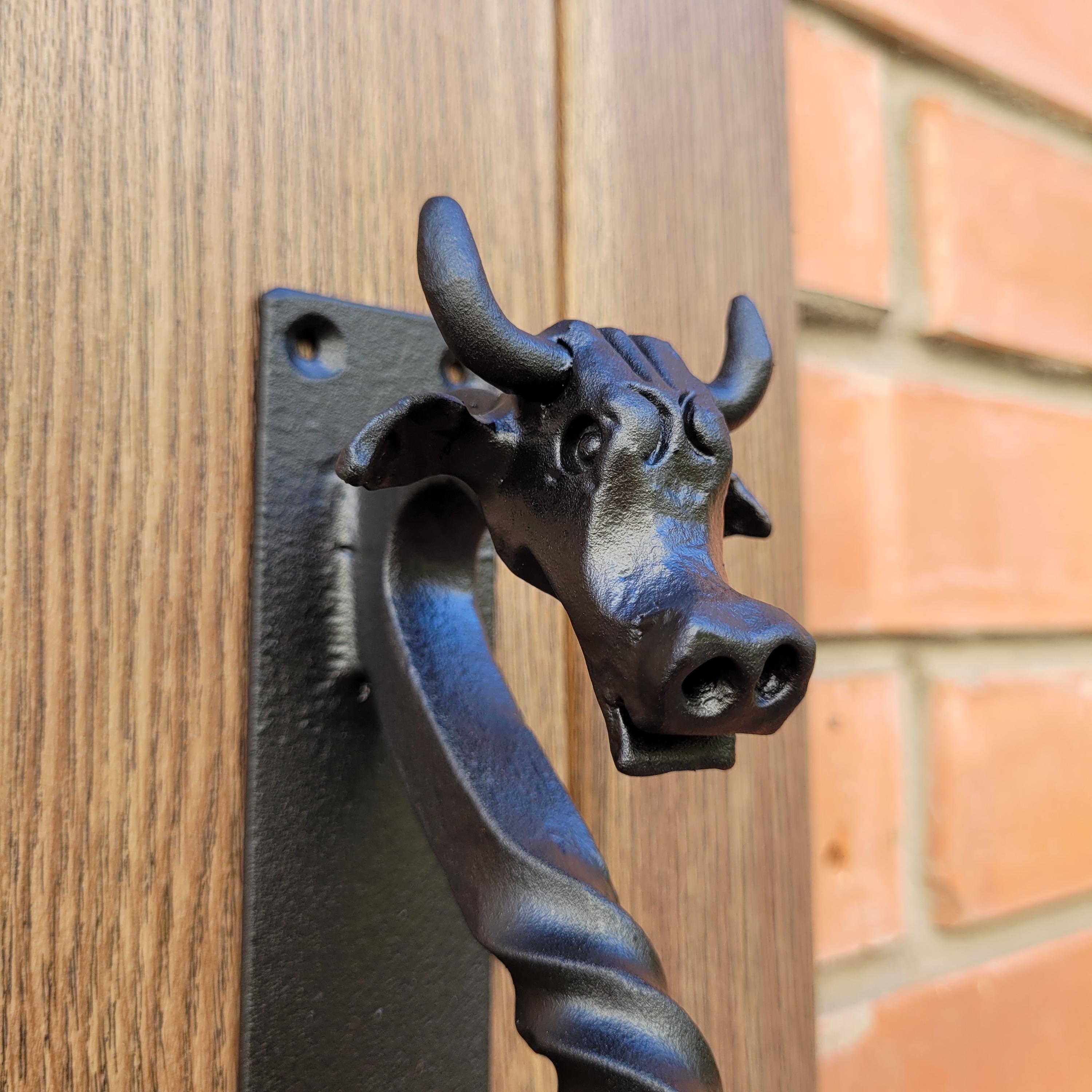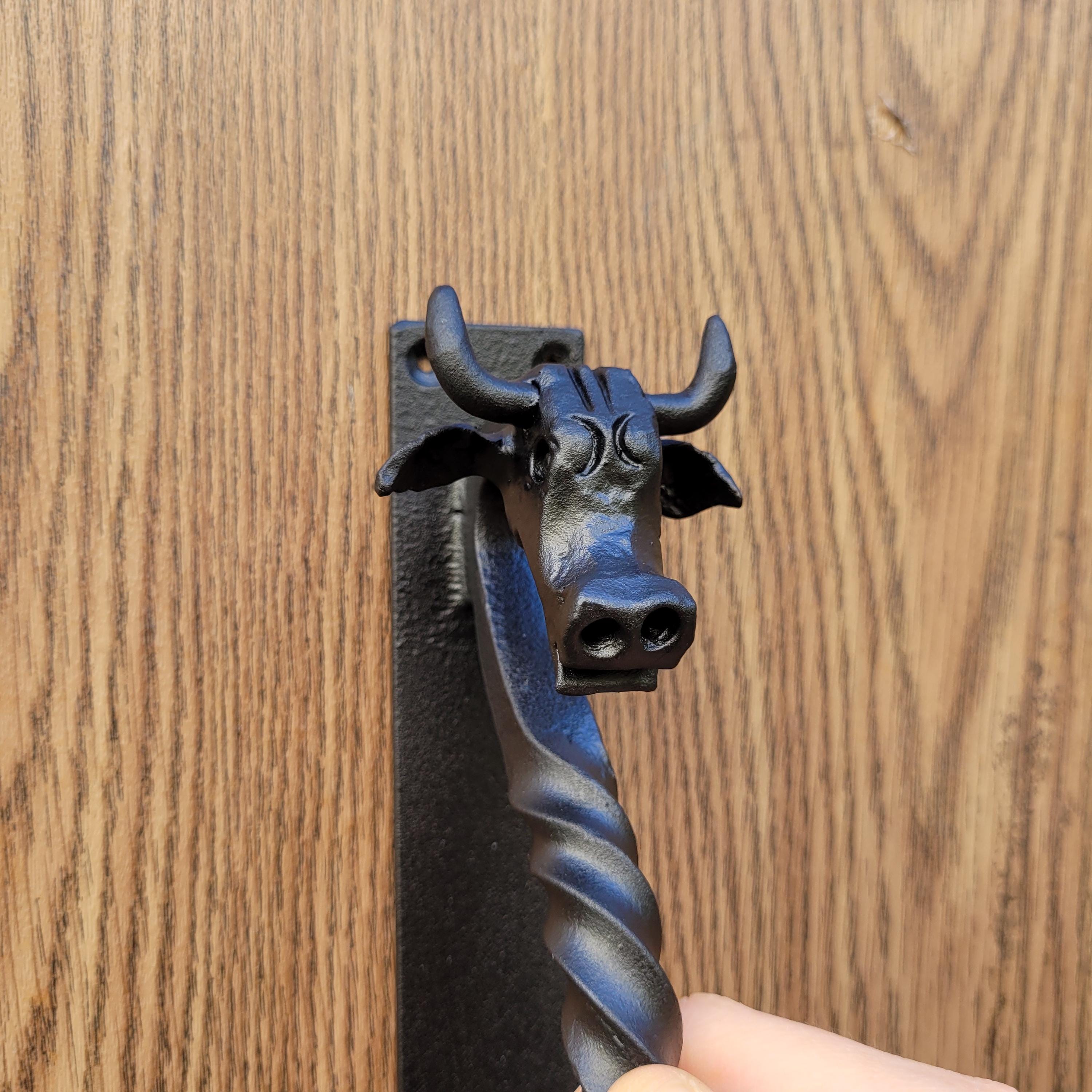 Hand-Forged Wrought Iron Cow Head Door Handle: Rustic Farmhouse Decor (black, 11.81" long)