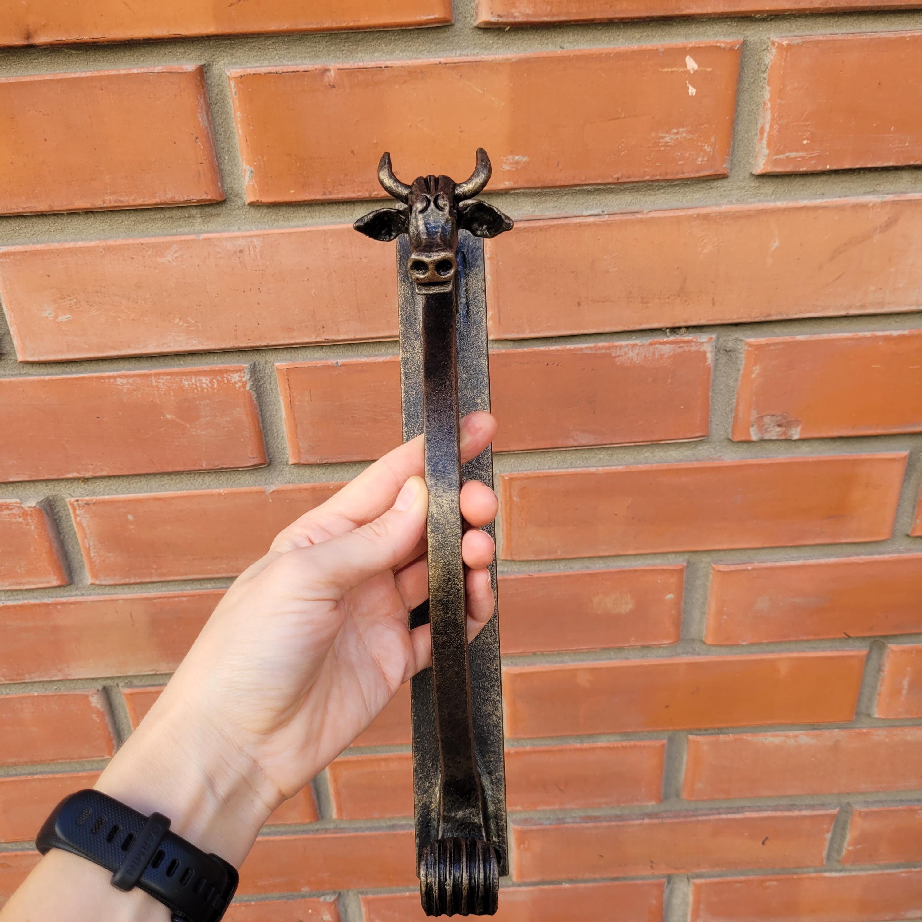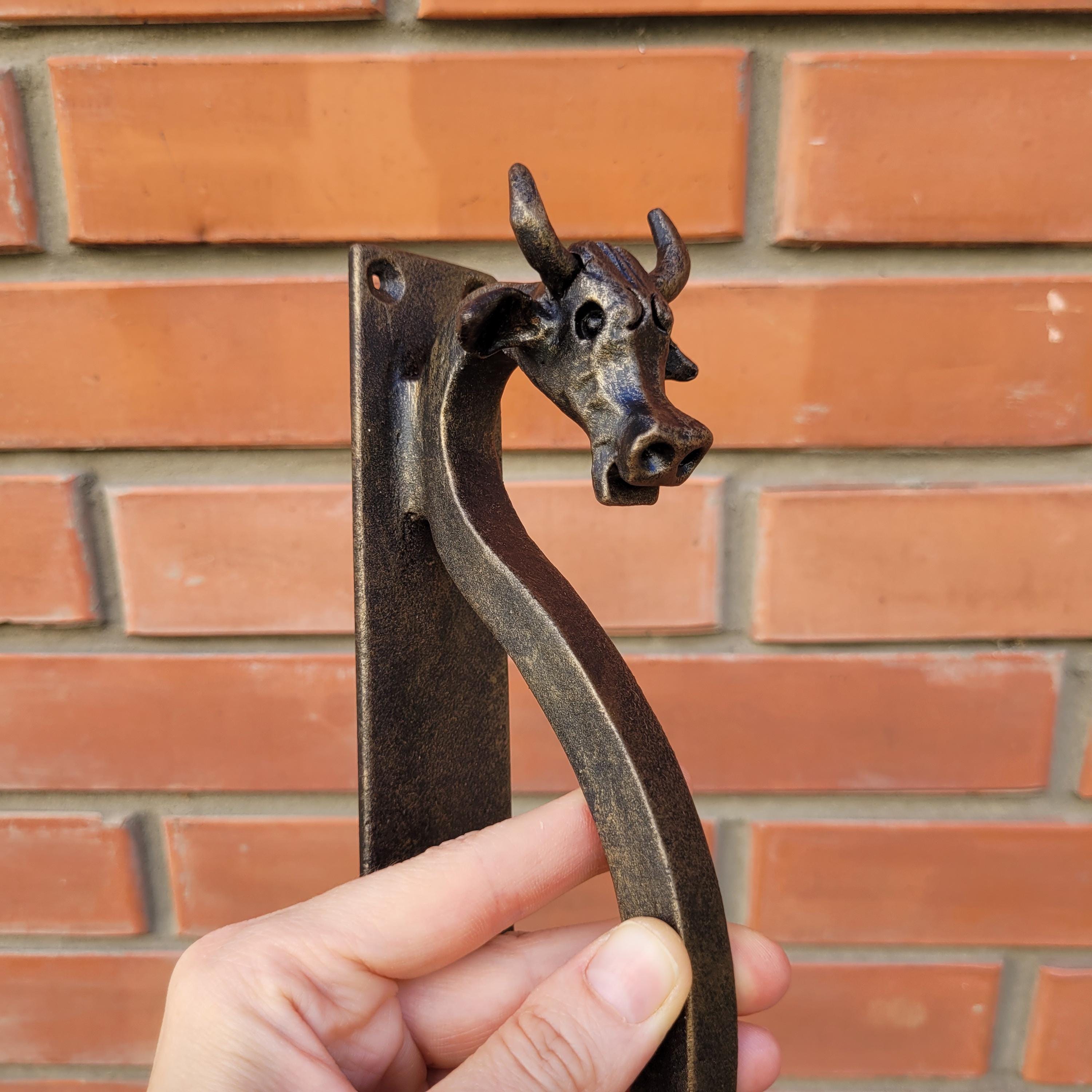 Hand-Forged Wrought Iron Cow Head Door Handle: Rustic Farmhouse Decor (bronze, 11.81" long)