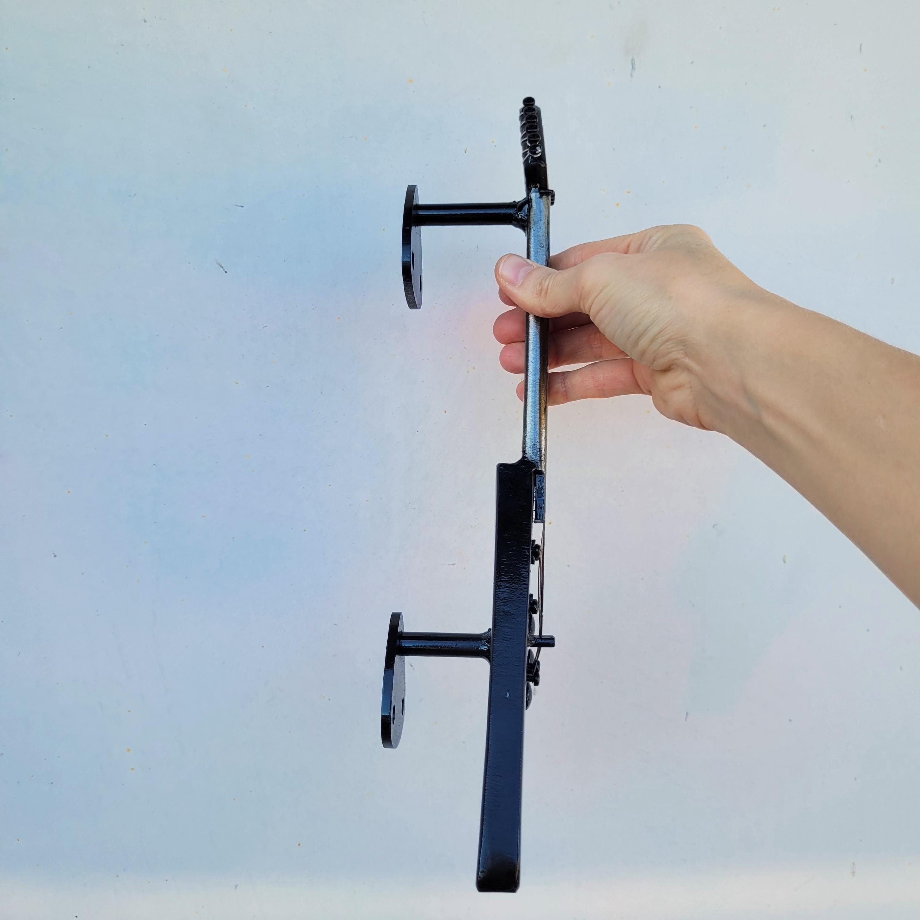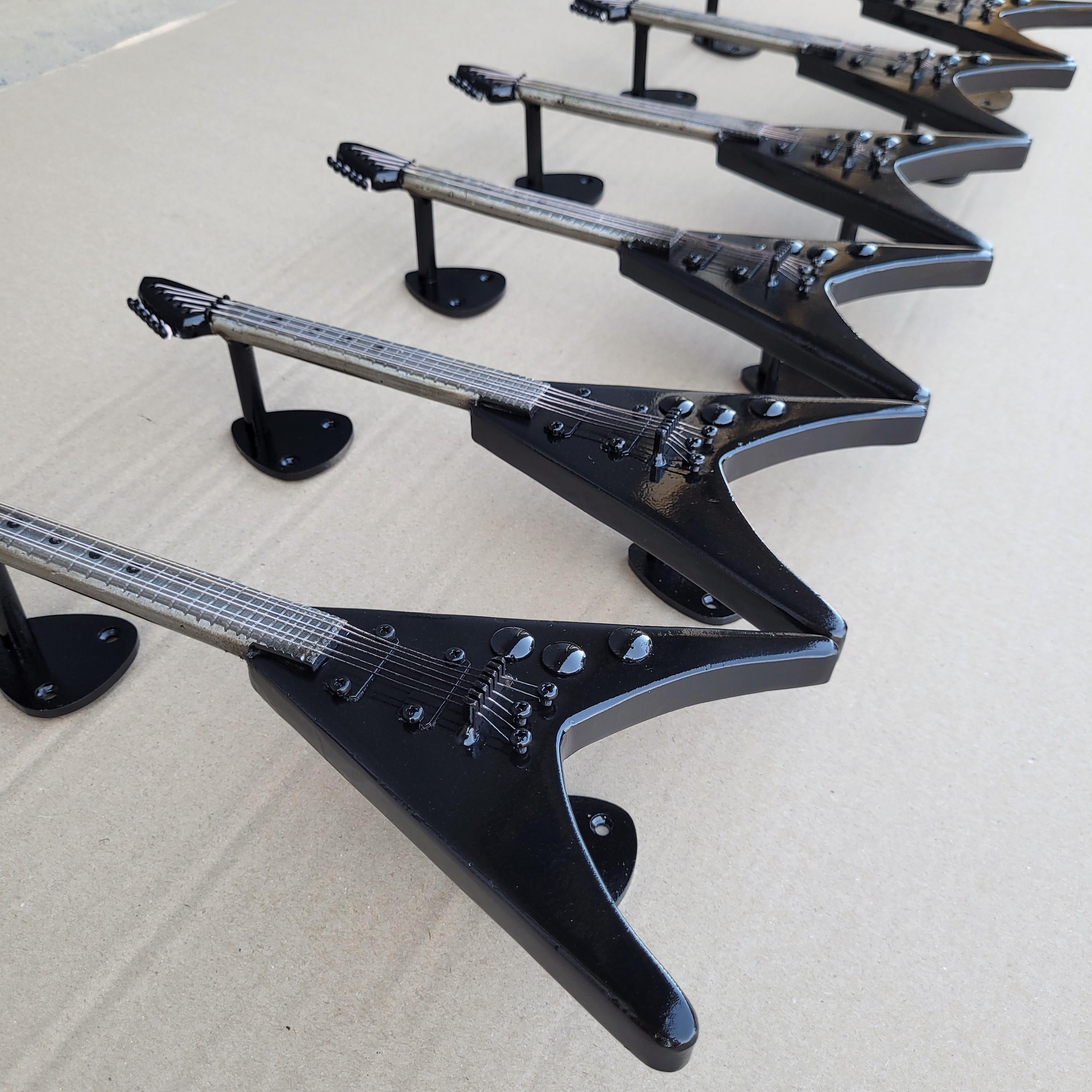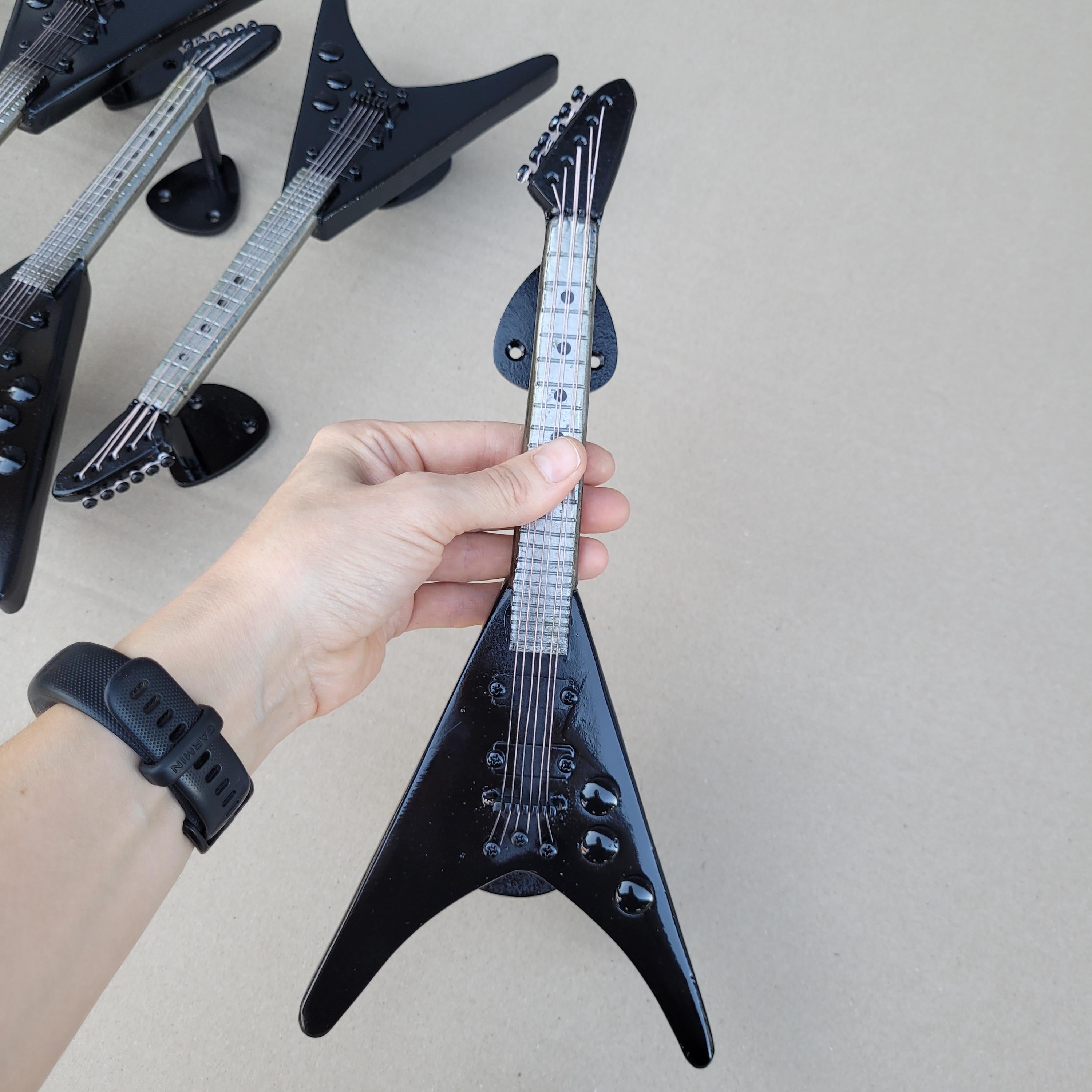 Handcrafted iron door handle in the shape of an electric guitar, a unique addition to any music lover's home. This guitar-shaped door handle features intricate, realistic strings that capture the essence of a true electric guitar. Designed in a striking black and silver color scheme, it adds a touch of rock 'n' roll elegance to your decor. Perfect for those searching for a "guitar-shaped door handle" or a "unique guitar door handle," this piece is not just functional but also a statement of your love for music. Ideal for anyone looking to incorporate "guitar-themed door hardware" or "decorative guitar door handle" into their space, this door handle combines artistry with practicality.
