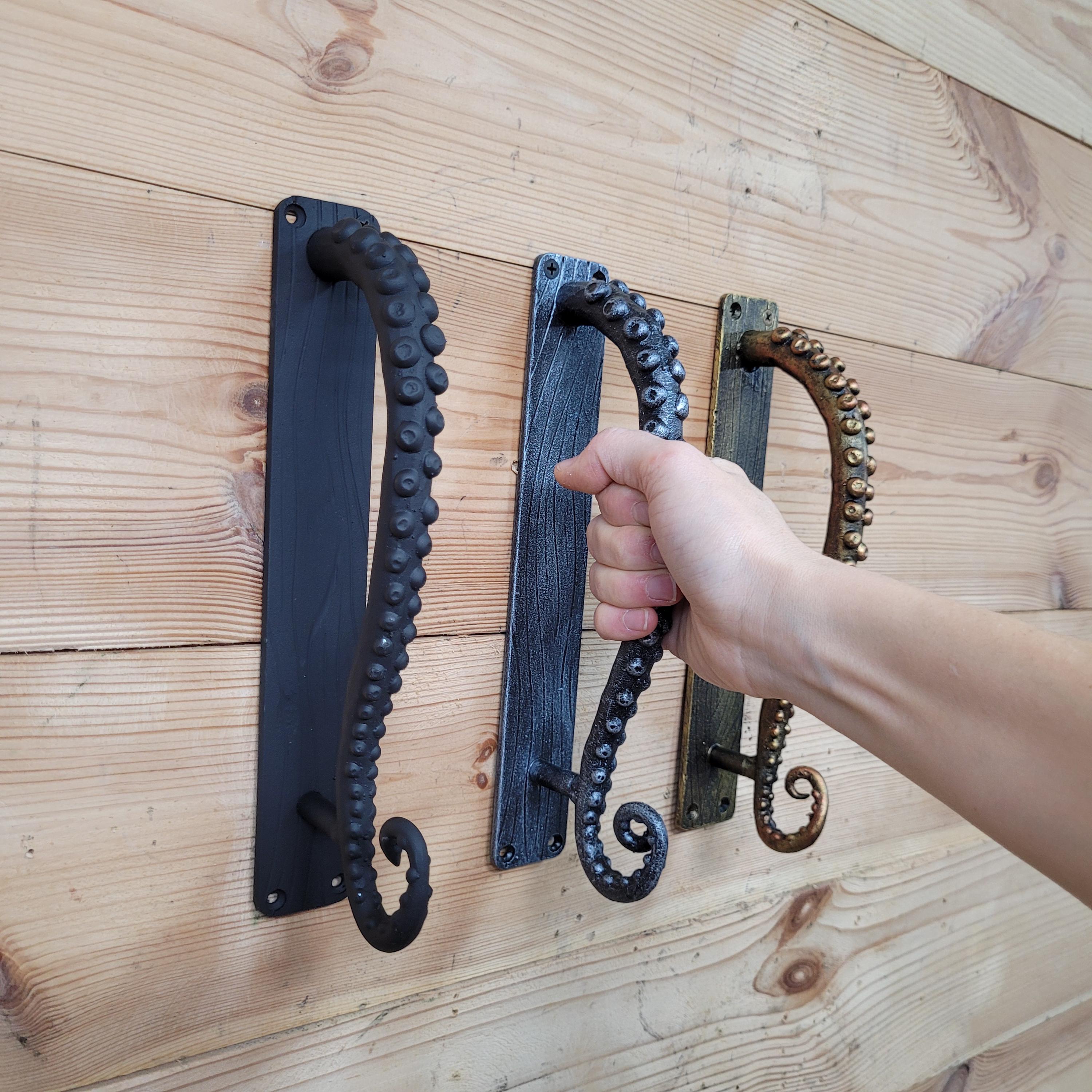 Octopus Tentacle Door Handle: Hand Forged Iron Nautical Style 3 available finishes
