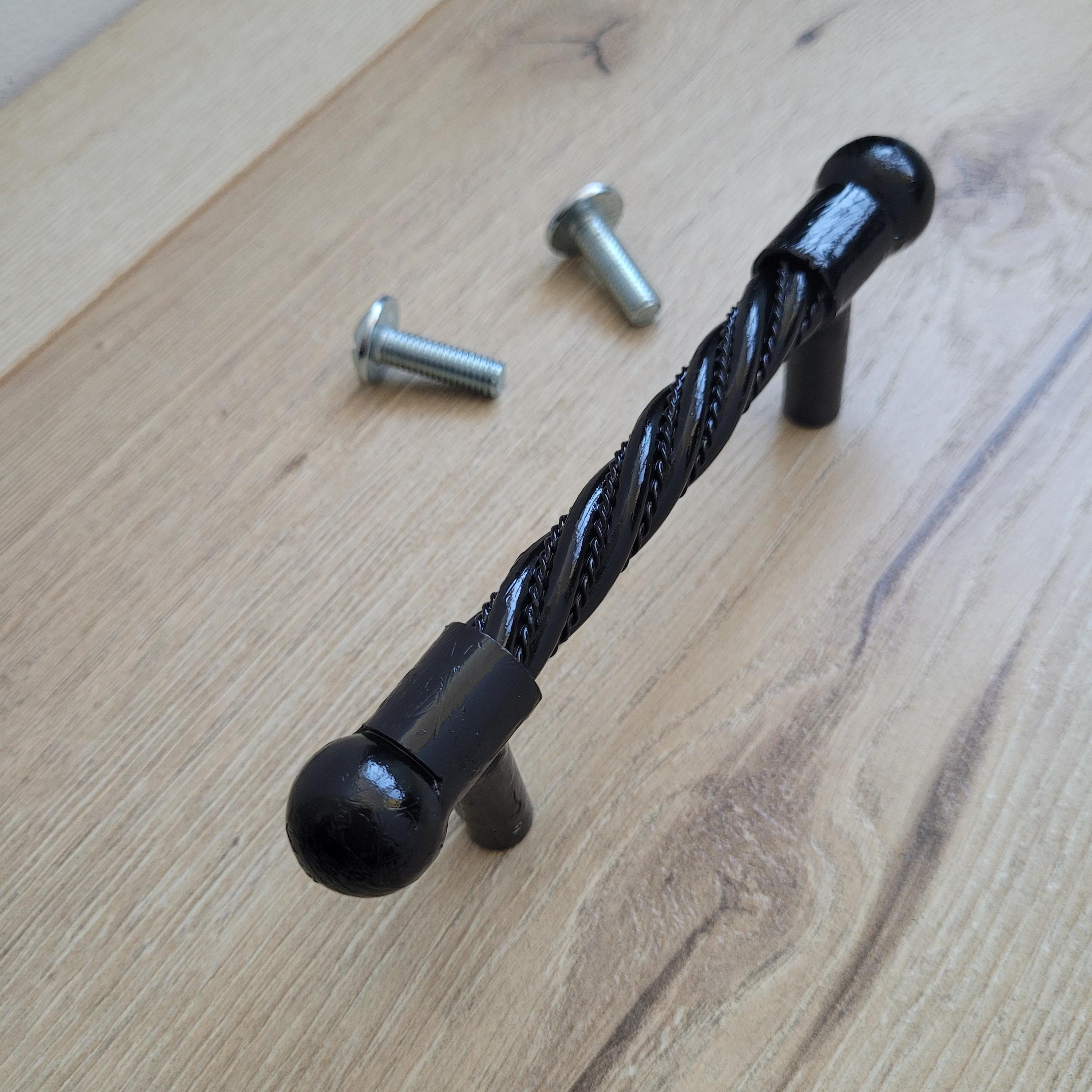 Twisted Iron Cabinet Handle – Black Metal Drawer Pull for Rustic Furniture