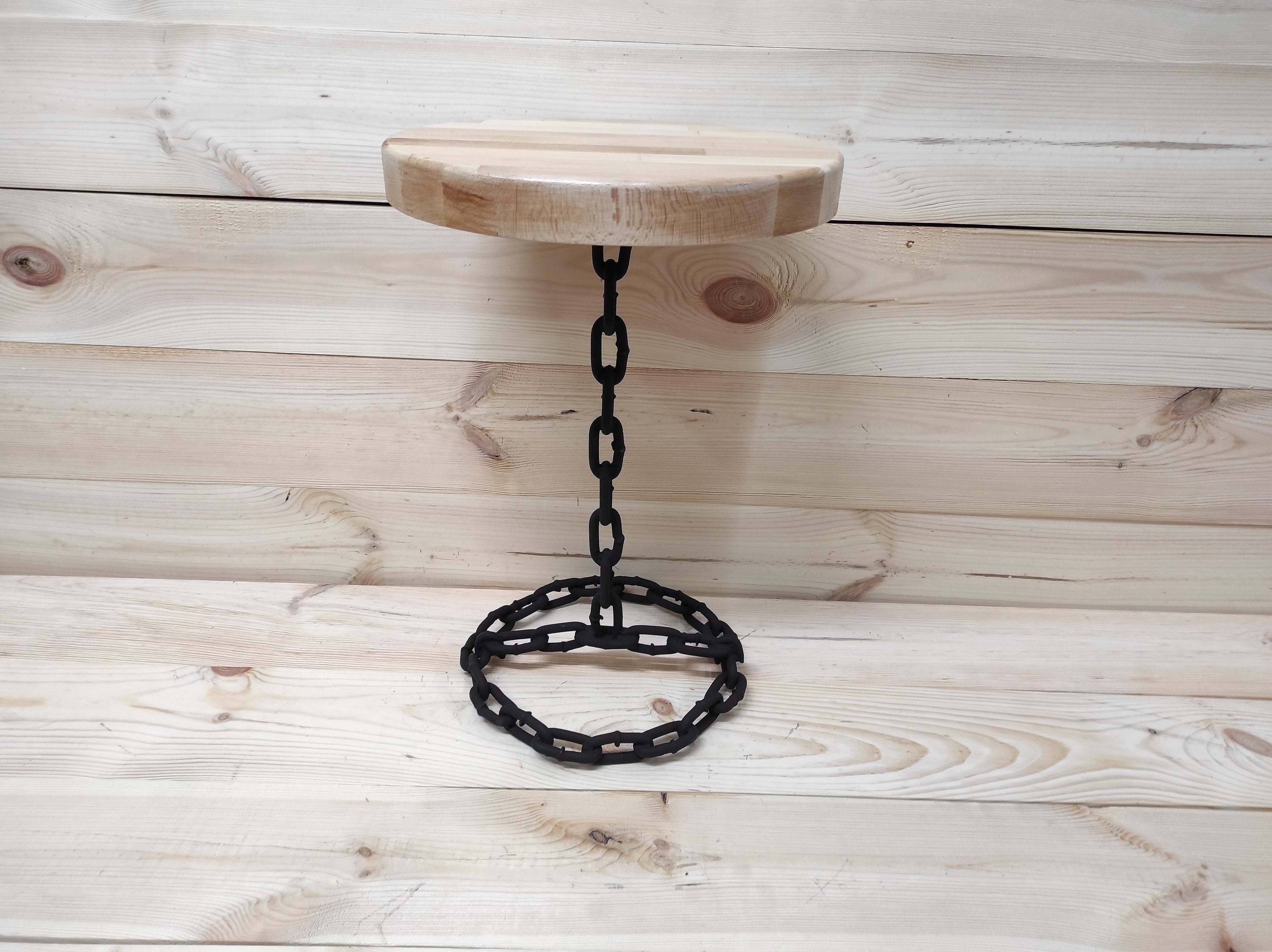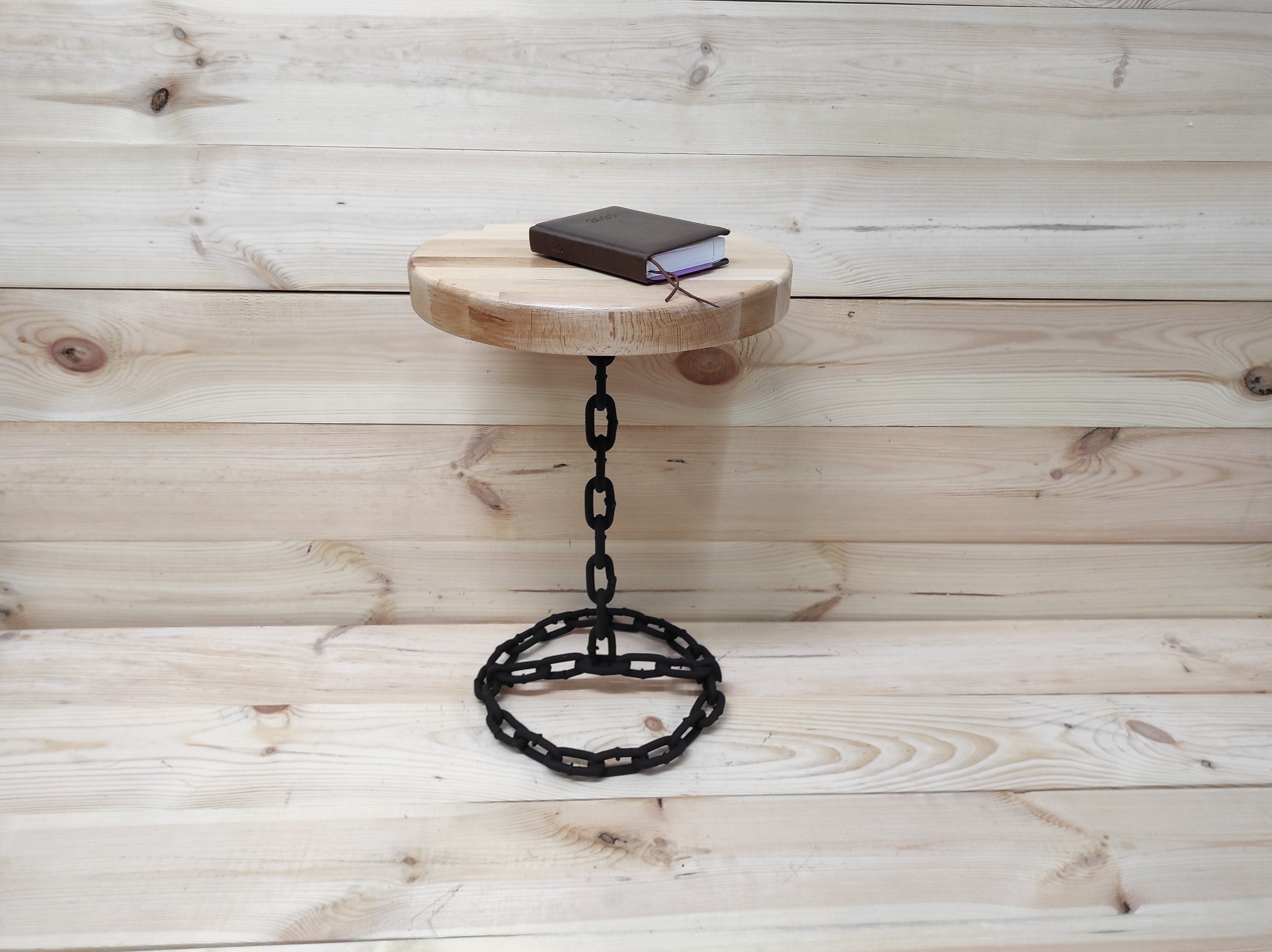 Handmade Beech Wood Table: Forged Iron Base, Bedside Plant Stand