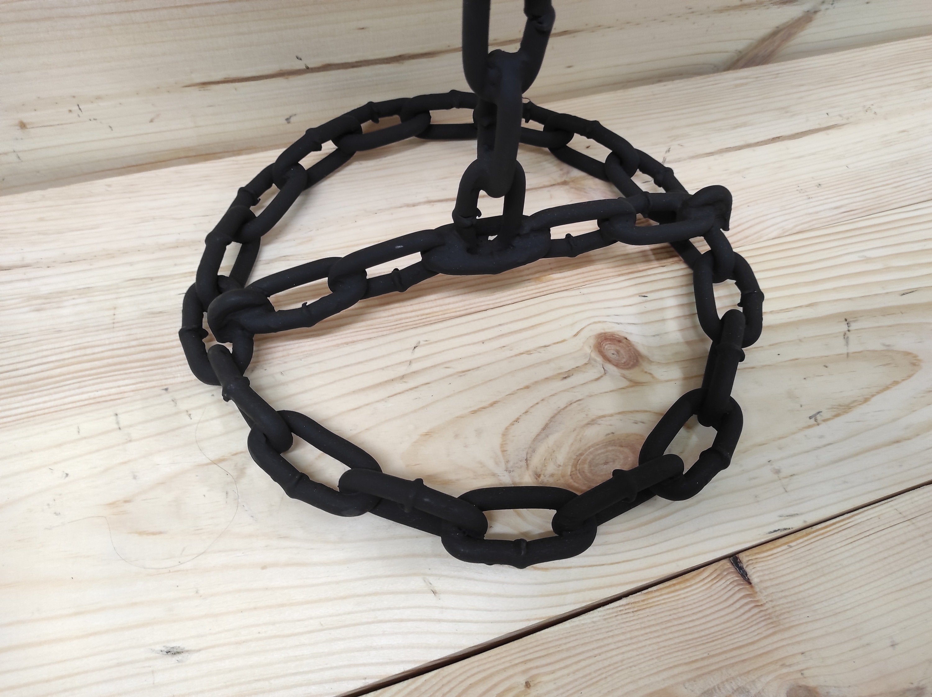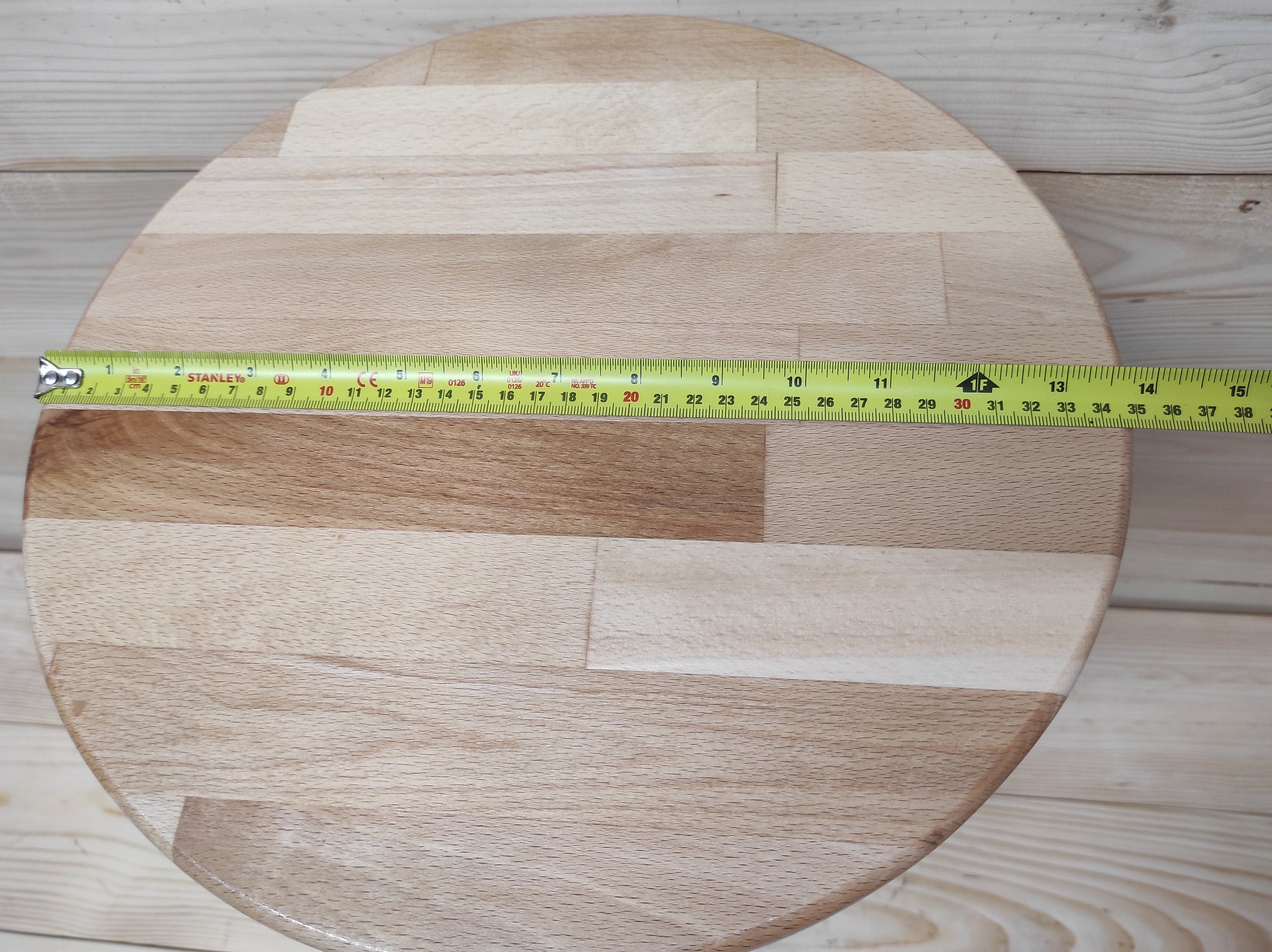 The base is forged iron, the top is made of Beech wood, 40 mm thick,
