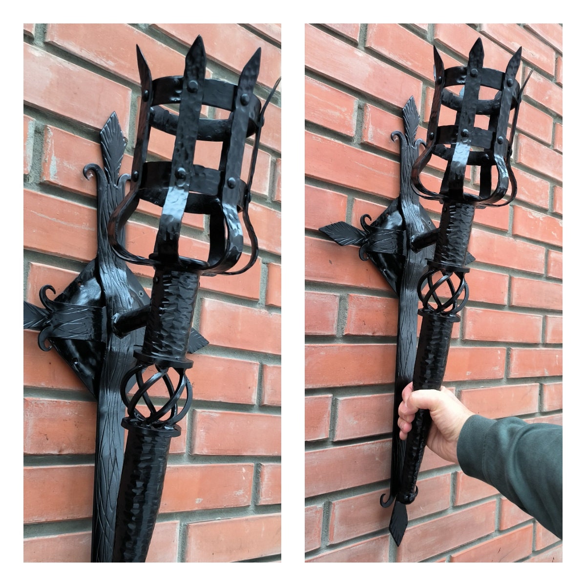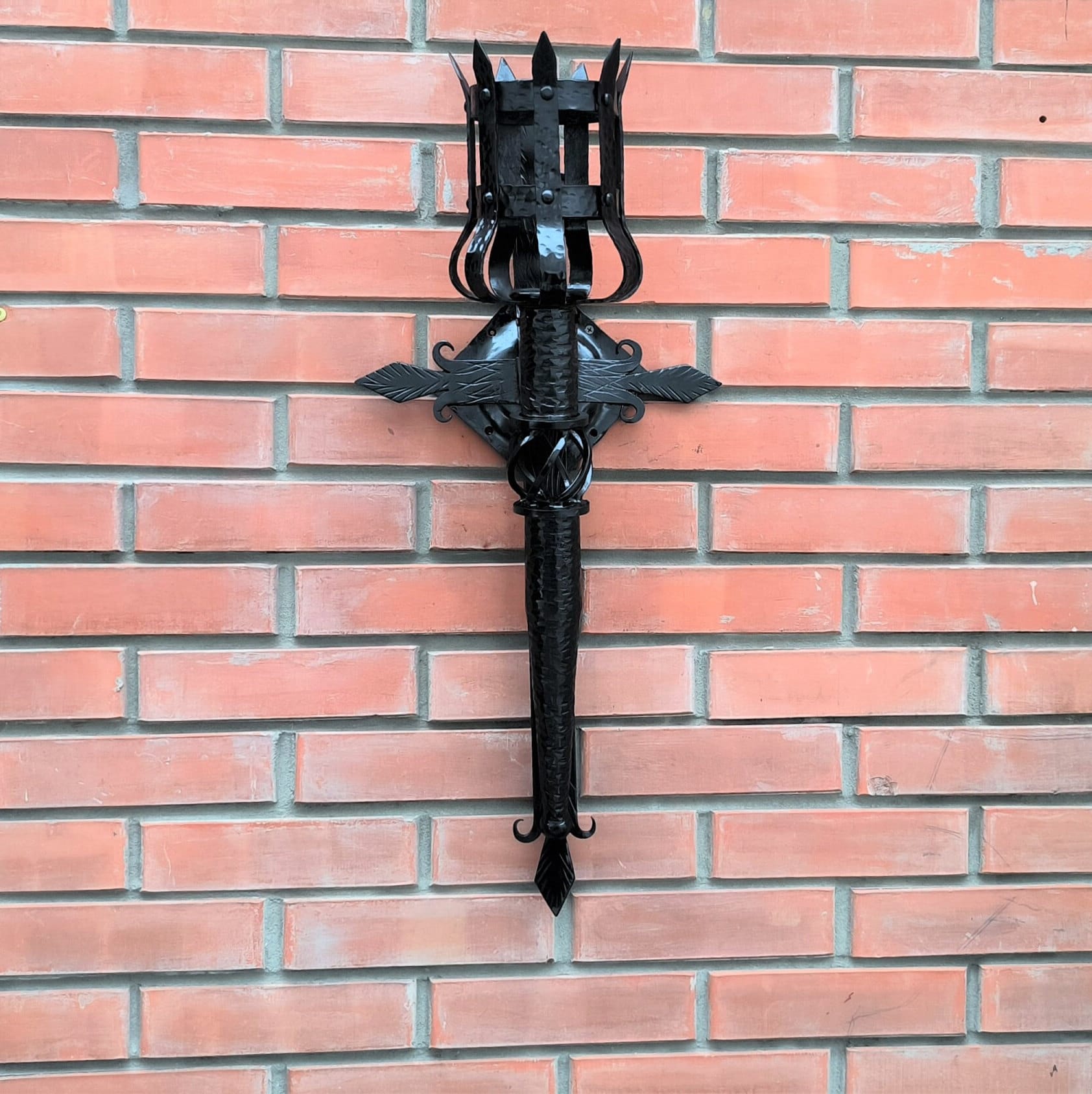 Gothic sconce, Metal wrought iron sconce, Torch wall lamp, Medieval style light fixture