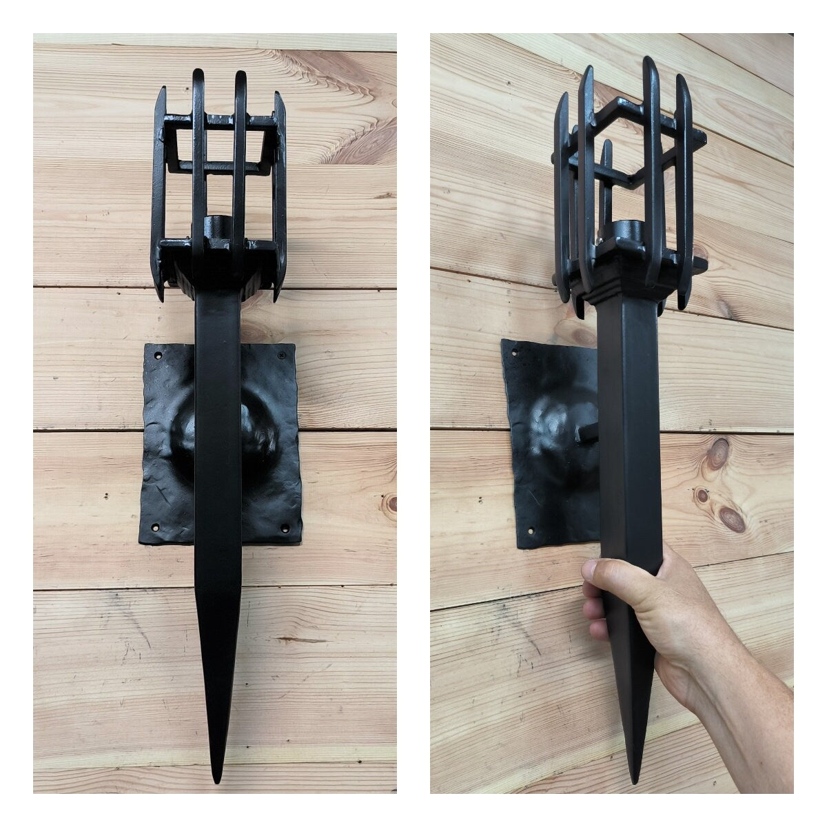 Hand Forged Wrought Iron Wall Sconce: Medieval Viking Torch Lantern