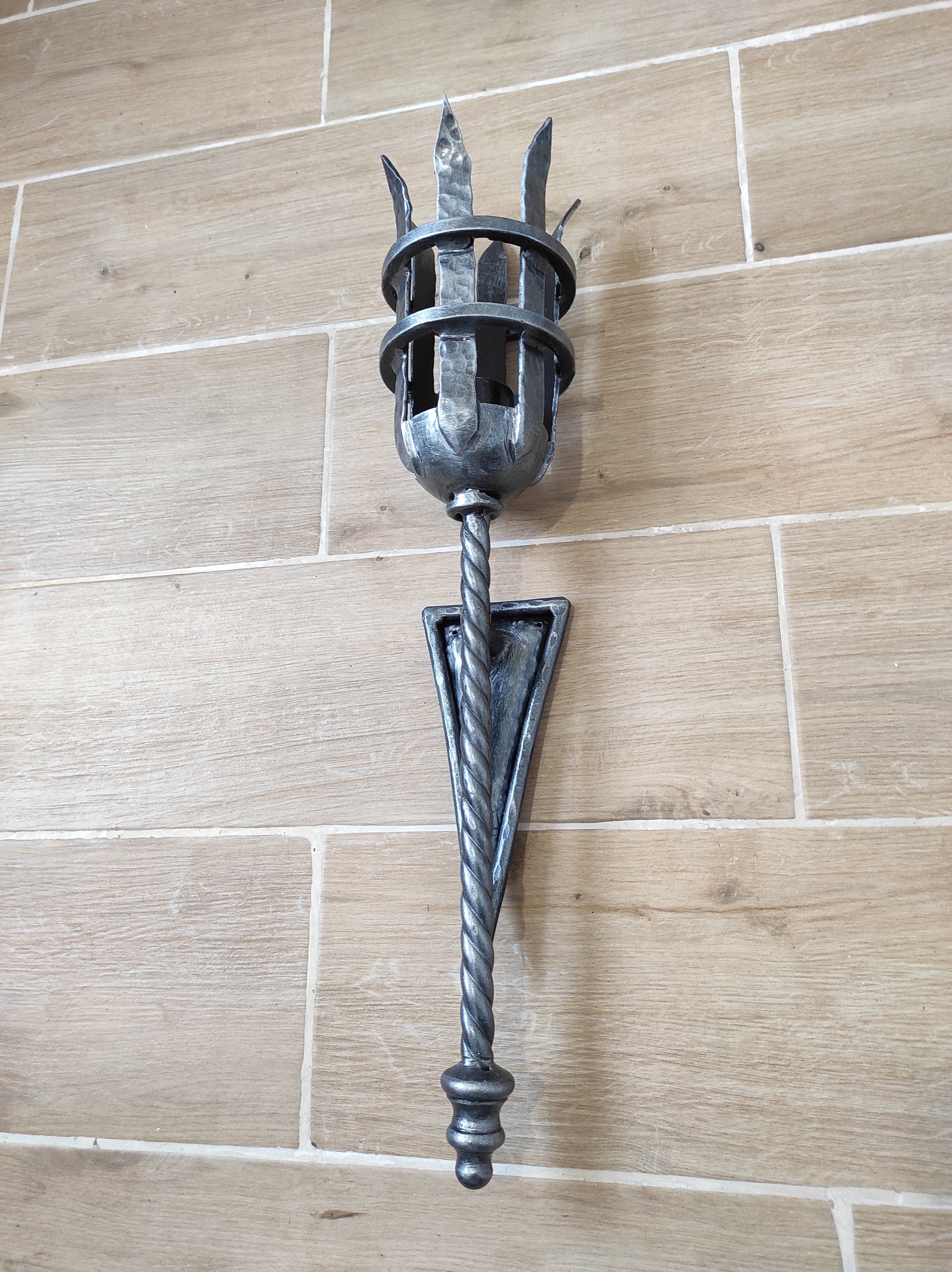 Hand Forged Wrought Iron Wall Sconce: Medieval Viking Torch Lantern